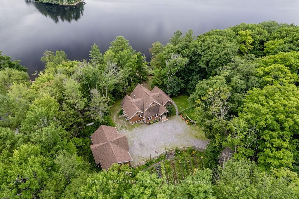 A serene waterfront lifestyle awaits with 3641 sq ft total finished on the shores of Butterfly Lake in Port Carling. This custom-built home is nestled on a private lot filled with matures trees, gardens, and calming southern exposure lake views from multiple rooms. The spacious interior is highlighted by a stunning cathedral ceiling with natural wood beams in the living room, where floor to ceiling windows overlook the backyard and a wood fireplace is set in an elegant brick facade. The fully-equipped kitchen offers ample cabinetry, a dual-level island, and is just steps from the versatile dining room space. A large pantry and laundry room combination add convenience, with the bonus of a garden door walkout. The primary retreat is complete with a pampering 5-piece ensuite and a walkout to a private balcony, ideal for enjoying your morning coffee or a night cap as the sun sets. Two other family bedrooms located on the main level are served by the main 4 piece bathroom. On the lower level, utilize the spacious recreation room to best suit your family's needs, and find plenty of space for guests with 4 additional bedrooms - all with 9' ceilings. A walkout to the backyard adds convenience while enjoying the summer sun, providing easy access to the 4-piece bathroom. Enjoy the great outdoors tending to the multiple gardens, practicing hobbies in the oversized garage with rough-in for loft/living space, and enjoying the pristine lakefront with loved ones. A newer dock adds peace of mind, and there is plenty of space for children to play on the shoreline. 1930 sq ft main level.
