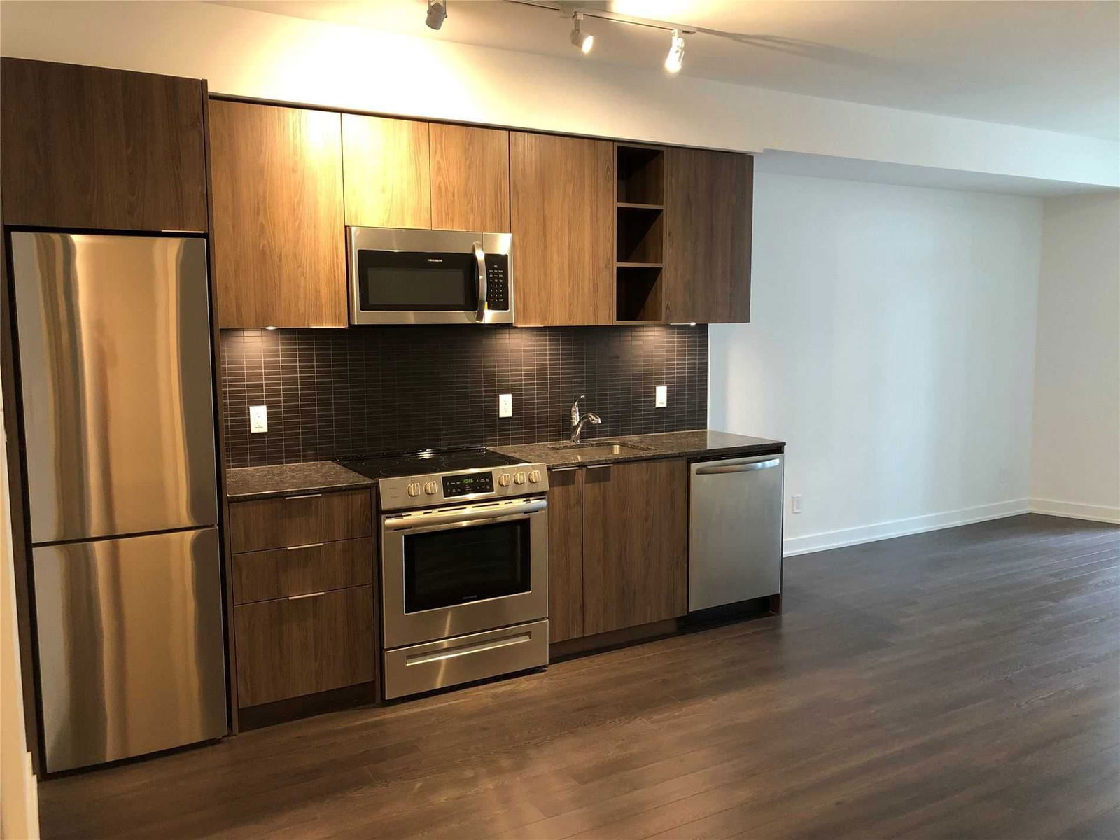 Bright And Gorgeous Two-Bedroom Condo With A Large Balcony With Abundant Sunlight, Walk To Lakeshore. Brand New Condo Features 9 Ft Ceiling. Upgraded Kitchen, Steps Away From Liberty Village, Public Transit And Gardiner Express.