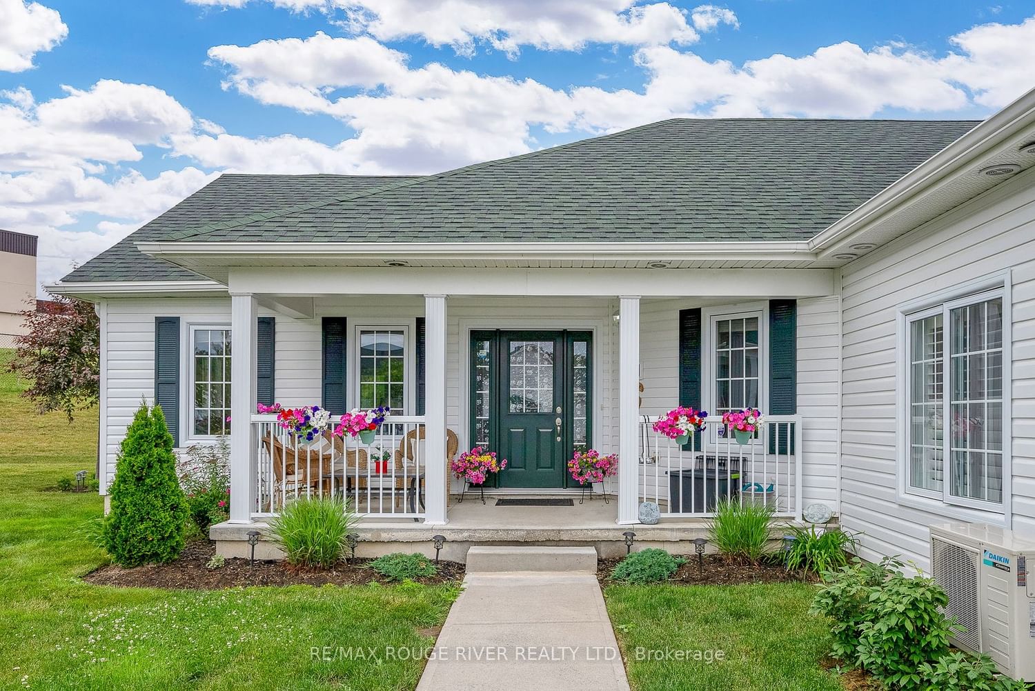 Now's your chance to invest in Port Hope's newer condo bungalow townhomes "Croft Garden Homes". This 2 generous size bedrooms, 1.5 baths, 1060 sq ft. Large bright living area boasting a vaulted ceiling, large windows, modern kitchen with gorgeous quartz counters and breakfast bar, stainless steel appliances, custom window coverings, air conditioning, laundry/storage room. 2 car parking in front of your unit. Relax on your front porch. Absolute move in condition, clean and well maintained. Lots of visitor parking! Located in a safe community in the historic town of Port Hope minutes to 401, HWY 2, Shopping, Restaurants, Schools, etc. Great local builder "Leblanc Enterprises".