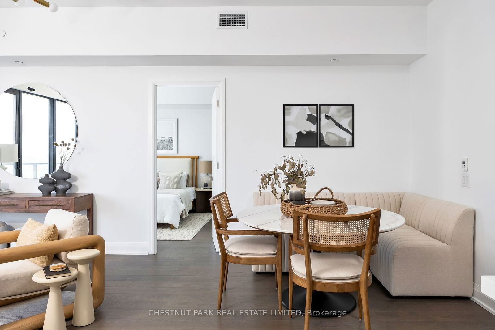Enjoy this luxurious light filled 2 bedroom, 3 bathroom suite located in the heart of Leaside in one of the areas most sought after buildings. Offering a split bedroom layout, this upgraded suite has stunning warm engineered hardwood flooring throughout along with an open concept living area design, which creates a spacious and inviting atmosphere, perfect for entertaining. Enjoy the extra wide living and dining area and it's natural light via the wall to wall, floor to ceilings windows and walkout to the oversized balcony, which offers treetop views of Sunnybrook Park and the sunning morning light. The modern Chef's kitchen provides a beautiful neutral palette with a centre island with breakfast bar seating, quartz countertops, an abundance of pantry space throughout and under-mount lighting, plus full sized appliances. The primary suite is spacious and offers a walk-in closet along with a roomy spa-like 5 piece ensuite bathroom, perfect for those days you want to hide from the world and treat yourself to some self care. The second bedroom has a private walkout to the balcony along with a 3 piece ensuite bathroom and double closet. Finishing the suite is the spacious foyer to greet guests along with the private powder room and your extra wide balcony which provides great space to create different seating or dining areas on the balcony which guests will enjoy. With exquisite and upgraded finishes throughout, an abundance of light and each room well proportioned to make perfect use of the space - this suite and building really has everything you are looking for in the heart of Leaside.