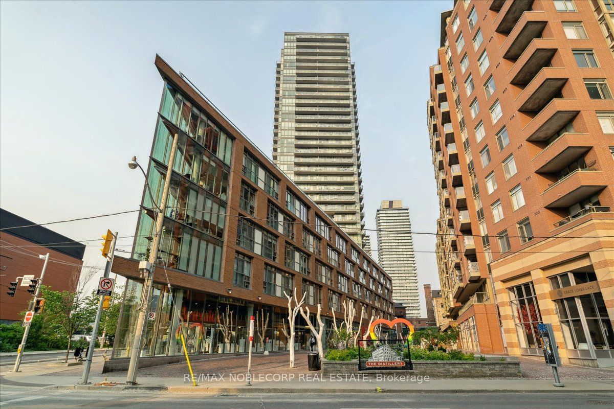 Introducing a stunning 1-bedroom + den condo in the heart of Toronto's vibrant Distillery District. This condo features a fantastic layout including unobstructed north-west views of the CN Tower and city skyline. Situated on a corner, the unit gives you views from both north and west with an abundance of natural light. The unit includes parking, 9-foot ceilings, and brand new flooring/ base boards throughout. Step outside to the large terrace, and enjoy one of the best views you will find in the city! Located in a great building with exceptional amenities, including one of the best outdoor pools, Gym, Yoga Studio, Sauna, hot tub. Minutes to the DVP and Gardiner, king st streetcar. 10/10 walk and bike score! Don't miss this opportunity!