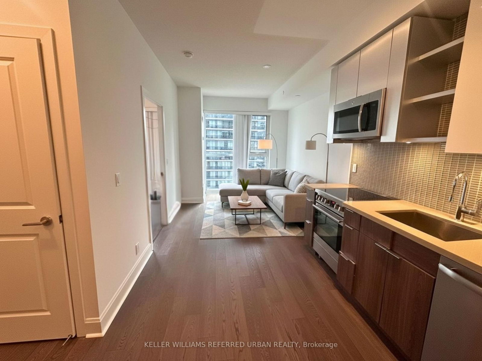 Experience lakeside living at its finest in this beautifully designed 1-bedroom suite at Jade Waterfront Condos. This bright and efficient layout features floor-to-ceiling windows, a modern kitchen with stainless steel appliances, in-suite laundry, and a spacious living area that opens to a private balcony with stunning, unobstructed views of Lake Ontario. The bedroom offers excellent natural light and generous closet space, creating a comfortable and inviting retreat. Jade Waterfront Condos offers an exceptional lifestyle with premium amenities including a 24-hour concierge, rooftop pool and hot tub, fitness and yoga facilities, theatre room, games lounge, guest suites, outdoor BBQ areas, and more. Located in the heart of Humber Bay Shores, you're steps to waterfront trails, parks, cafés, restaurants, shops, and transit, with quick access to the Gardiner Expressway and downtown Toronto. Perfect for those seeking comfort, convenience, and breathtaking waterfront views in one of Toronto's most desirable communities.