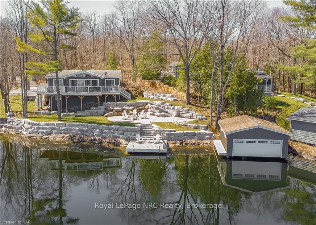 Welcome to your lakefront sanctuary on Big Bald Lake in the beautiful town of Buckhorn. Big Bald Lake is a part of the Trent Severn Waterway and is connected to several other lakes. Enjoy open concept living in this fully renovated three-bedroom bungalow, where every detail has been carefully considered. The kitchen is stunning, complete with granite counter tops and a working island that seats 4. The living room/dining room combination leads to the wrap around composite deck with a three-island view. This view is spectacular and has been called the best view in the Kawarthas. There is extensive armor stone which boasts a flagstone fire pit and multiple levels of luxury. The boathouse will keep your water toys clean and dry and is right beside the fishing dock. The lake house boasts deep clean water that is weed free and excellent for swimming. Big Bald Lake is calm and great for water sports like kayaking, canoeing and paddleboarding. In the winter, there is great ice fishing and groomed snowmobile trails that allow you to explore nature and wildlife all the way up to Ottawa.
