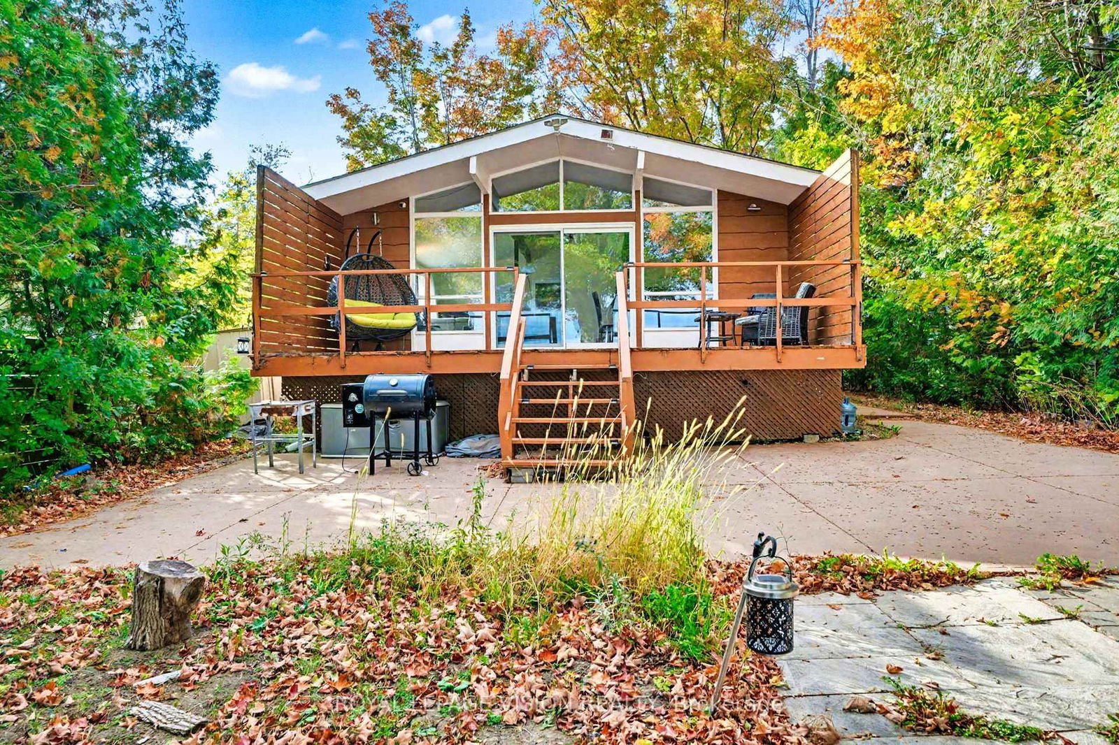 Nestled on a peaceful private road, this beautifully updated three-bedroom waterfront retreat blends modern comfort with timeless lakeside charm, offering the perfect balance for year-round living or a weekend escape. Inside, an open-concept layout showcases rich hardwood floors, vaulted ceilings, and a stylish kitchen finished with sleek granite countertops. The spacious living area opens onto a 24' x 10' deck where you can take in stunning panoramic views of Lake Simcoe ideal for quiet mornings or relaxing evenings surrounded by nature. A rare private boathouse with a marine railway adds convenience for water enthusiasts, while the upper-level 14' x 22' terrace provides a perfect setting for entertaining or stargazing. Just minutes from Friday Harbour, golf courses, dining, and local events, this home offers a serene waterfront lifestyle with all the nearby amenities you could want. Total finished living space: 1,027 sq. ft.