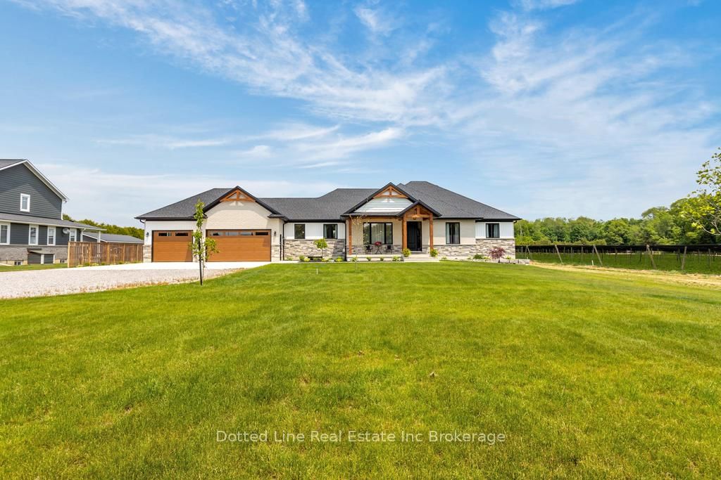Luxury, Style and built to perfection. You don't want to miss this one. 2400 square feet on the main floor with a finished basement for a total of about 4,500 square feet of living space. With an impressive covered front porch & entrance to the home, you'll immediately appreciate the design and layout of this home. 9-foot ceilings & pot lights everywhere. The living room has a tray ceiling & fireplace with a black mantle to the ceiling. Custom Kitchen with oversized island (54"x108'), granite counter, tiled backsplash, under-cabinet lighting, undermount sink & high-end appliances. You'll want to cook in this kitchen. Next to the kitchen, you'll store all your favourites in the full walk-in pantry complete with counter, granite countertop & another sink, along with heavy-duty shelving & wine rack. Experience fine dining every evening & enjoy the view through the large patio door, walking out to a huge covered, concrete patio area & level step in hot tub to the right. Primary bedroom at the back side of the house designed for peaceful sleeping where dreams do come true. Wash away any fears in the glamorous ensuite with spa-like bath tub, walk-in tiled shower complete with glass doors, double sink vanity & reflective mirrors. The lower level is designed for entertainment & games. The recreational room offers over 1,000 sq' plus a separate games room for kids. You'll love the colors, the lights & the ambiance. After games & movie night, you'll appreciate the two additional bedrooms & full bathroom, worry about nothing until tomorrow. But this isn't just about the house; we also have a workshop. Yes, 28'x38' spray foam insulated, complete with overhead heating, air conditioning, 100 amp breaker panel & 14-foot roll up door with auto opener & pot lights everywhere. Plus a lean to for outdoor entertaining & cookouts. All this on over an acre lot backing onto open fields. 10 minutes to all the amenities you need and a convenient, relaxing drive to Long Point Bay.