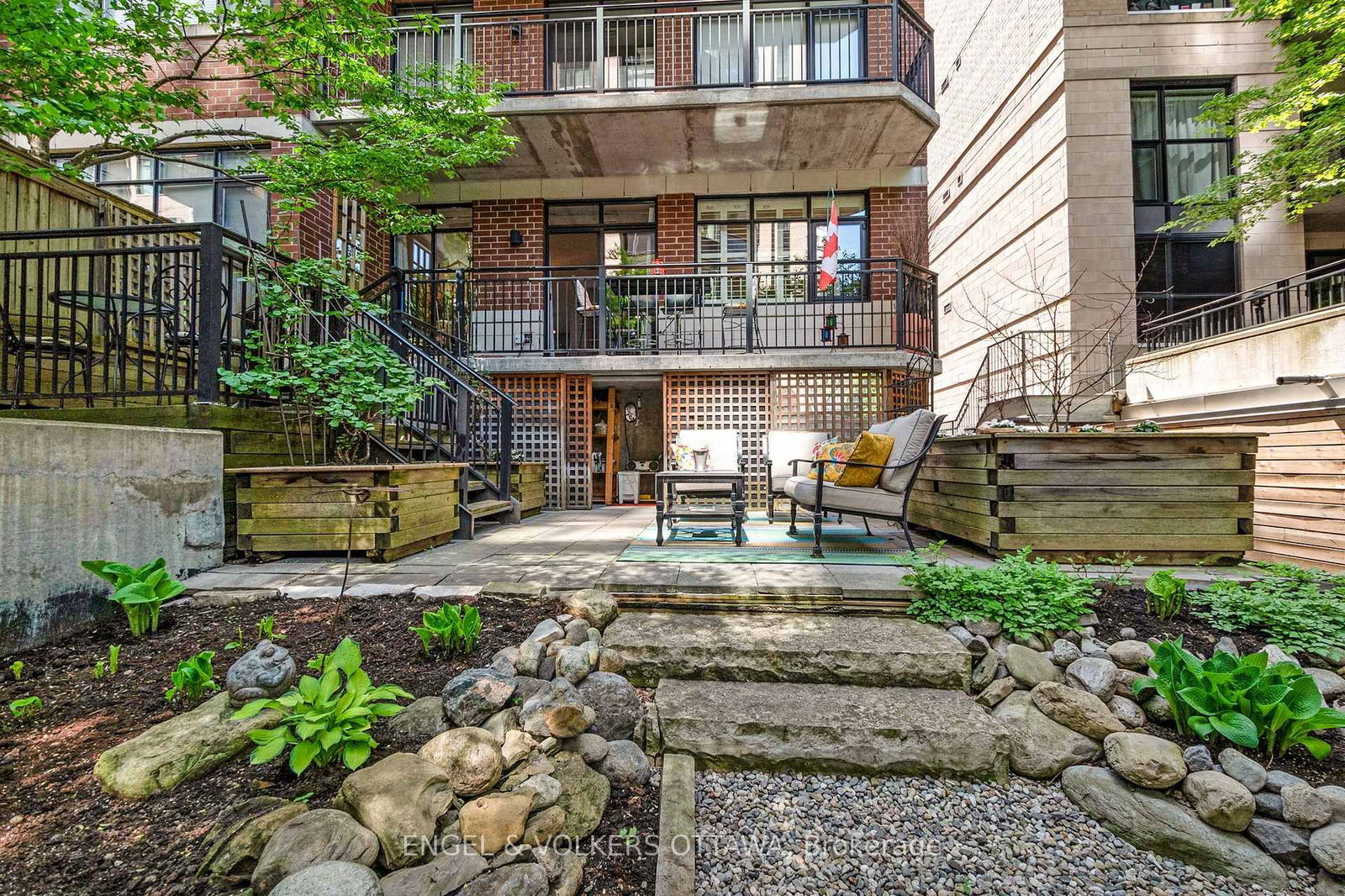 This stylish 2-bed condo in Centretown blends smart design, quality finishes, and a rare 1200 sq/ft private ground-floor terrace, your own outdoor escape in the heart of the city. Freshly painted in April 2025 and featuring brand-new appliances (March 2025), the open layout includes high ceilings, hardwood floors, a breakfast bar, and an electric fireplace. The bright primary bedroom offers generous storage, while the second bedroom includes a built-in Murphy bed, perfect for guests or a home office. The terrace is beautifully finished and low maintenance. Includes in- unit laundry, underground parking, a storage locker, and plenty of in-suite storage. All in a quiet, well-managed building just steps from Bank St, Elgin, shops, restaurants, and transit.