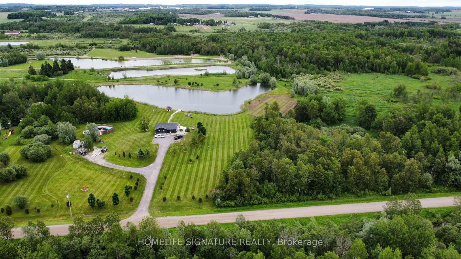 Escape to serenity your dream retreat (8.56 Acres) on the edge of Amaranth, just minutes from Shelburne. This unique 3 Bedroom Bungalow offers peace, privacy, and plenty of room to entertain. The open-concept layout offers a seamless flow into the living area, highlighted by a cozy electric fireplace and elegant herringbone-patterned porcelain tiles. Main floor features a custom kitchen with granite countertops, soft-close cabinetry, and premium appliances. The generous dining area showcases panoramic views eastern exposure overlooking a peaceful pond and southern views of your private woodlot. From here, walk out onto the spacious wraparound deck, ideal for morning coffee or hosting evening gatherings. Make the most of summer with a heated above-ground pool and its own expansive, enclosed deck perfect for outdoor entertaining.The fully finished walkout basement is a true retreat, boasting rustic barn board features, a wet bar, pellet stove, 3-piece bath, and a flexible family room that could easily be converted into an extra bedroom or home office. Unwind in the 3-season sunroom with a built-in hot tuba perfect space to relax, enjoy games,and soak in the peaceful setting.With stunning views of your own pond and shoreline, this property offers the best of both worlds: an entertainers haven and a quiet countryside escape. You can canoe, kayak, or fish at your leisure right from your backyard.The property comes with a 1-acre tree farm where the owner has planted over 500 young seedlings, offering both beauty and future growth potential.