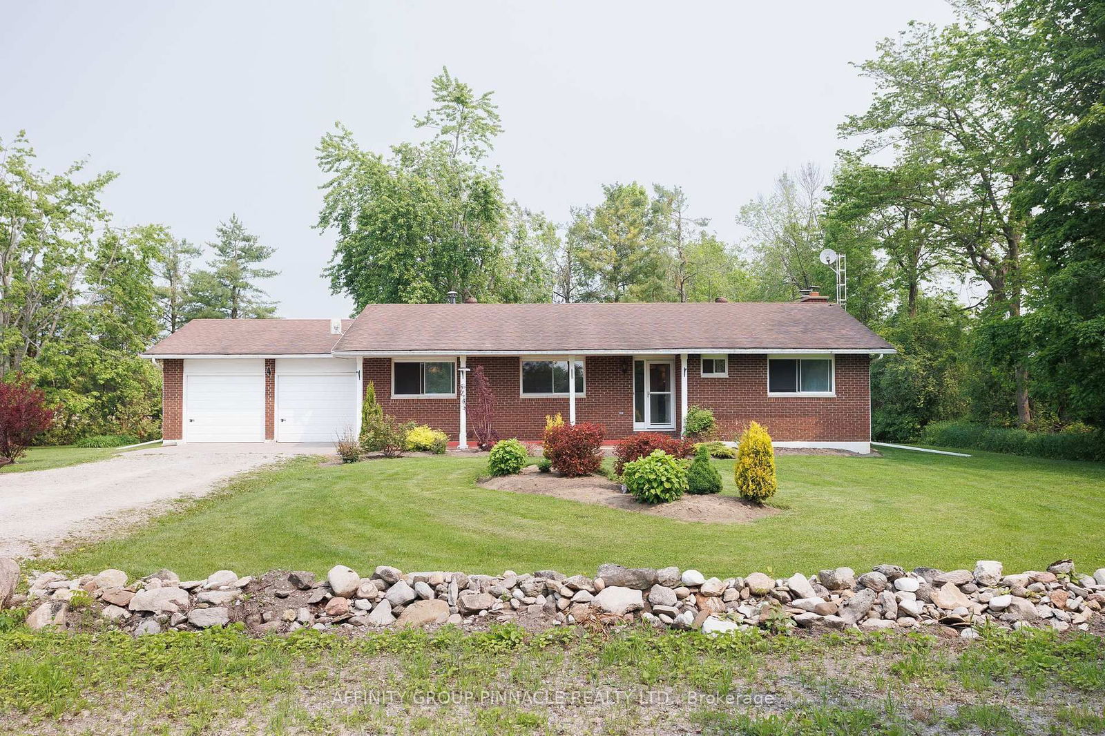 Welcome to your next chapter. If a peaceful, easy feeling is what you're looking for-look no further! This beautiful one acre landscaped, level lot offers an all brick, ranch bungalow with finished basement, complete with a wood burning stove (WETT certified). A well-maintained 3 bedroom 2 bath home with original wood floors throughout the main level, The large picturesque living room window allows a wonderful amount of natural light and direct views of the backyard. The room is finished nicely with a wood burning brick fireplace for year-round comfort and ambiance. Newer stove and dishwasher (less than 5 yrs) in the kitchen. Enjoy the spacious breakfast nook with patio doors opening to your new deck. Or choose more formal occasions in your separate dining room. The lower level split staircase is just another feature highlighting the home's detail and custom design. 3 equally good size rooms await you, use one for your games and movie nights, one as a handy and practical workshop, and the centre room is laundry and storage -good height -good light! New 200 AMP electrical panel and new fibreglass oil tank. 2 car garage and parking for 6 ...the list goes on! Convenient highway access for all your other needs so don't miss this opportunity to see and make it your own! Can you hear the birds in song yet!