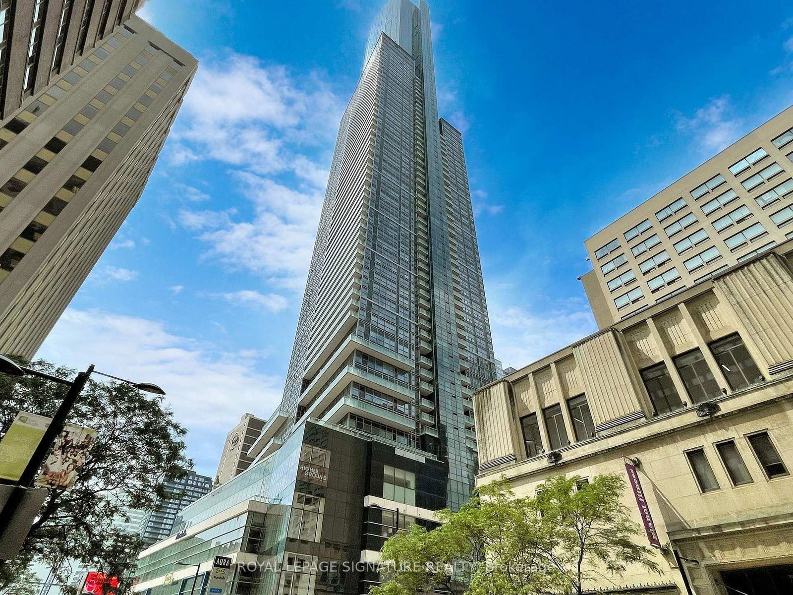 Wake up to the Morning Sun and all of its Glory! Large, Well Laid out 1 Bed and Den Offers High Ceilings, Ample Closet Space and Centre Island. Floor-to-ceiling windows, Well Maintained. The Building is Connected to College Park with Direct Subway Access and 2 Grocery stores without even stepping outside. Short Walk to Hospital Row, Eaton Centre, and UofT. 3 Elevators Dedicated to 56-79th floors. Amenities: State-of-the-art Fitness centre, 24hr concierge, party room, theatre room.