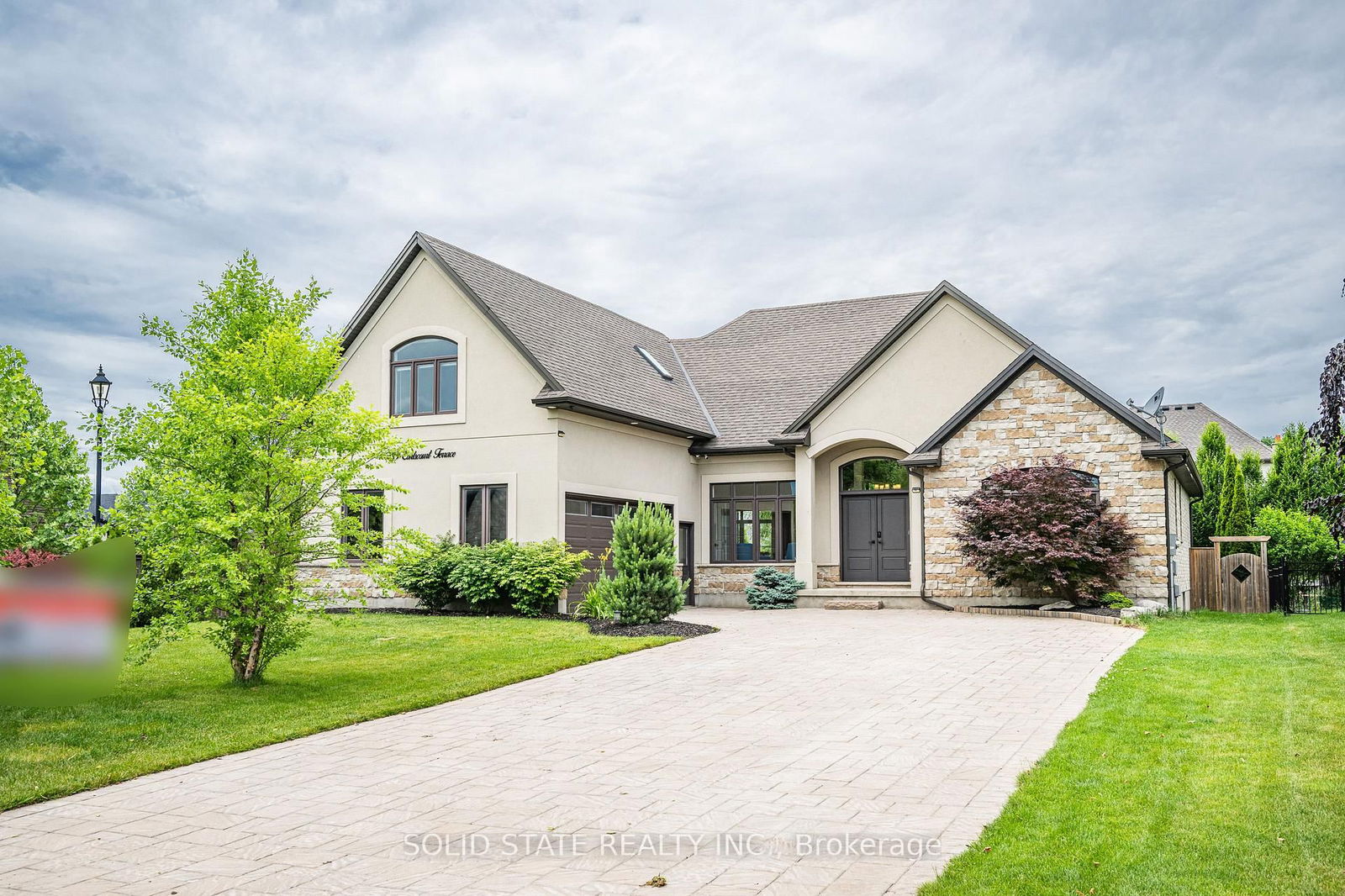 Welcome to 39 Earlscourt Terrace, Kilworth a custom-built bungaloft located beside Komoka Provincial Park and the Thames River. This home offers over 5,000 sq ft of finished living space, with 5 bedrooms (3 with private en-suite above ground) and 4.5 bathrooms. The open-concept living room has a 14-foot cathedral ceiling, oversized windows, a gas fireplace, built-in speakers, and hardwood floors. The kitchen includes custom cabinetry, granite countertops, stainless steel appliances with a gas stove, a built-in oven and microwave, a large breakfast bar, and stone backsplash. The adjacent dining area opens to the backyard through a walkout. The backyard is fully fenced and landscaped with mature trees, shrubs, mulched gardens, and space for a future pool. A covered concrete patio includes built-in speakers and pot lights. The main-floor primary bedroom has a walk-in closet and a 5-piece ensuite with double vanities, a glass-enclosed shower, and lighted mirrors. An upgraded floating staircase leads to the upper loft, which includes a home theatre system with surround sound and projector. It has a full bathroom and can function as a bedroom. The finished basement has 2 bedrooms, a large recreation room with a wet bar, mini-fridge, and electric fireplace, as well as a spa-like bathroom with soaking tub and glass shower. Includes oversized windows, storage, and a large cold room. The driveway fits 810 vehicles. The extended-sized two-car garage includes interior door entry. Close to schools, shops, and amenities like tennis courts, soccer fields, baseball diamonds, and a community center with YMCA, skating rink, library, gym, and splash pad. **INTERBOARD LISTING: CORNERSTONE ASSOCIATION OF REALTORS**