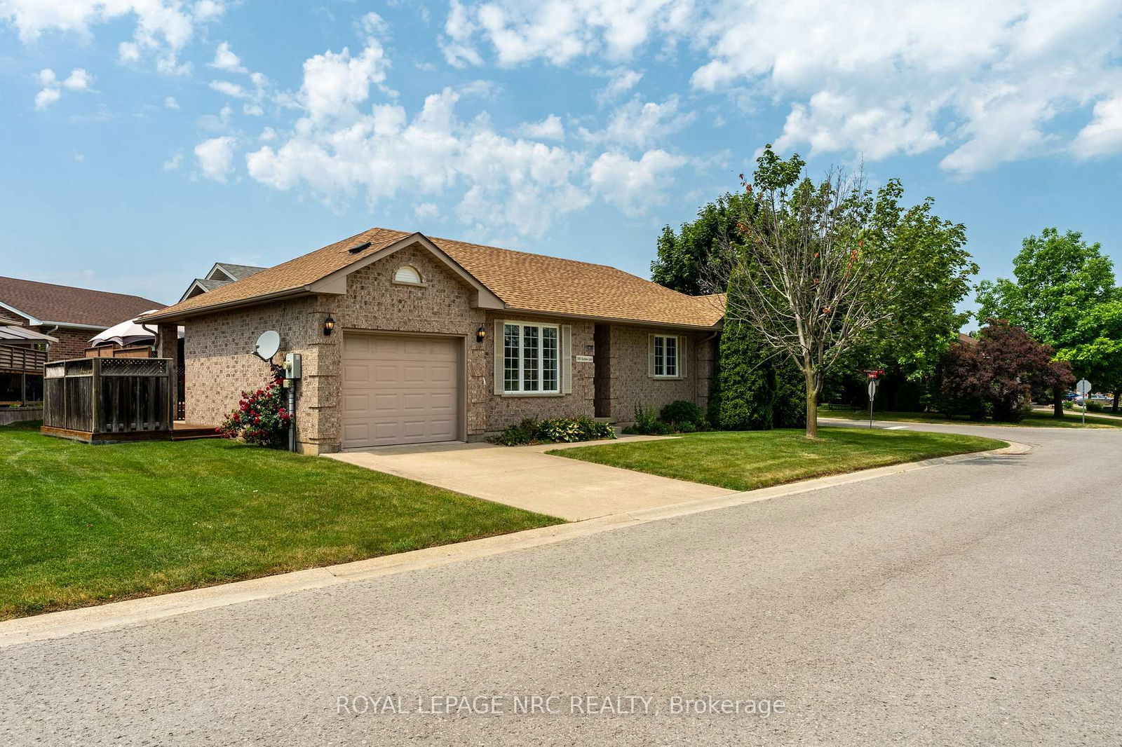 Discover the ease of main-floor living in this inviting 2-bedroom, 2-bathroom bungalow with finished basement and attached single garage located in Cherry Hill neighbourhood, a land-lease community tucked away in Niagara's wine country. You'll love the curb appeal of this charming brick home with convenient visitor parking across the street. Step inside and you'll find an open concept layout with all new vinyl plank flooring throughout the main level. The inviting living room features generous windows that fill the home with natural light and a cozy gas fireplace adds warmth and ambiance. The adjoining dining room offer a seamless flow for everyday meals and entertaining with direct access to the deck - ideal for BBQing and enjoying the sun. The kitchen offers plenty of cabinetry, pantry and includes all appliances. The garage door entry is direct into the kitchen - so bringing in groceries will be a breeze! Down the hallway, the generous primary bedroom offers ample space for a king size bed and furniture with large walk- in closet. The second bedroom is perfect for guest stays, as an extra tv room, hobby or office space. The staircase leading to the basement features brand-new carpeting for a fresh updated look and added comfort underfoot. Downstairs is fully finished with a second bathroom including shower and the versatile layout adds valuable extra living space to the home. There's extra closet space here as well as additional storage. Outside, you'll love the easy stroll to the Cherry Hill Clubhouse where you can swim in the heated outdoor pool, relax in the library, attend scheduled activities or work-out in the gym - there's something fun for everyone here!