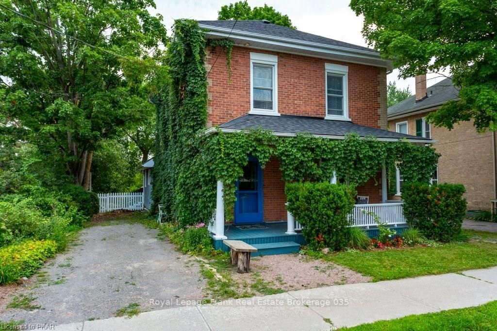 Fabulous 2 Storey century home featuring quality updates and ample amounts of living space. Have the blend of a beautiful brick century home and updated interior with a tremendous 1,906 square feet of living space! Plus a spacious 2 Level deck with steps walking you out into the backyard. Located on a peaceful, quiet street, steps from the beautiful, quaint businesses and shops of downtown Lakefield! This move in ready property features new 2014 kitchen, antiqued wood kitchen countertops (Camlen Furniture, Quebec), custom made kitchen cabinetry (Kawartha Cabinets), granite-top kitchen island with custom built frame, original stained glass window, updated 2014 lower and 2015 upper bathrooms with Custom built upper bathroom shower enclosure, Custom built-in deck furniture, Hardwood flooring throughout with Tile flooring baths, Bedroom with cozy woodstove, new roof late 2017, very mature garden with variety of flowering bushes and perennials and in-law or rental possibility. 3 mins to SGS