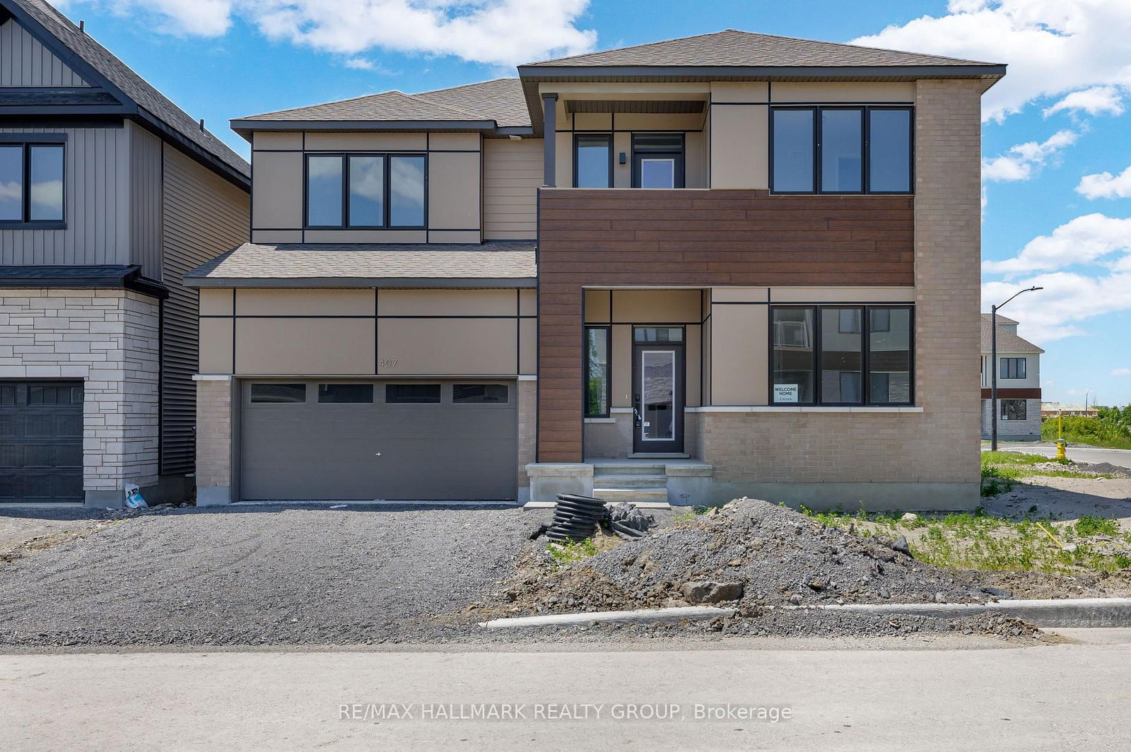 Stunning newly built Caivan home featuring 4 spacious bedrooms, 4.5 bathrooms, and over $150,000 in thoughtfully selected upgrades. This beautifully designed property offers a bright and welcoming foyer with an entry closet and 2-piece powder room. The main foor includes a private office/den, a formal dining area, and a chefs kitchen with double-stacked upper cabinets, quartz waterfall island, pots and pans drawers, spice and garbage pullouts, a custom microwave drawer cabinet, and under-cabinet LED puck lighting. The open-concept layout fows into a generous great room with a modern freplace, while the mudroom provides access to an additional walk-in closet and storage. The home is finished with engineered hardwood fooring throughout and features 10-foot ceilings and a hardwood staircase with a red oak open stringer, modern balusters, and matching handrails. Upstairs, the luxurious primary suite includes a massive walk-in closet and a reconfgured 5-piece ensuite with double sinks, a freestanding tub, and a glass-enclosed marble tile shower. The second and third bedrooms also offer walk-in closets and share a 4-piece bathroom, while the fourth bedroom features its own private 3-piece ensuite and walk-in closet. The upper level also includes a laundry room with waterproof fooring and floor drain, a spacious linen closet, and a private balcony overlooking the street. The professionally fnished lower level adds even more living space with a large rec room, family/entertainment room, a full bathroom, mechanical room with sump pump, and dedicated storage. Additional upgrades include soft-close cabinetry throughout, enhanced vanity confgurations,upgraded railings, and a 200-amp electrical panel with room to expand. This meticulously fnished home combines luxury, comfort, and functionality in one of Ottawas most desirable new communities.
