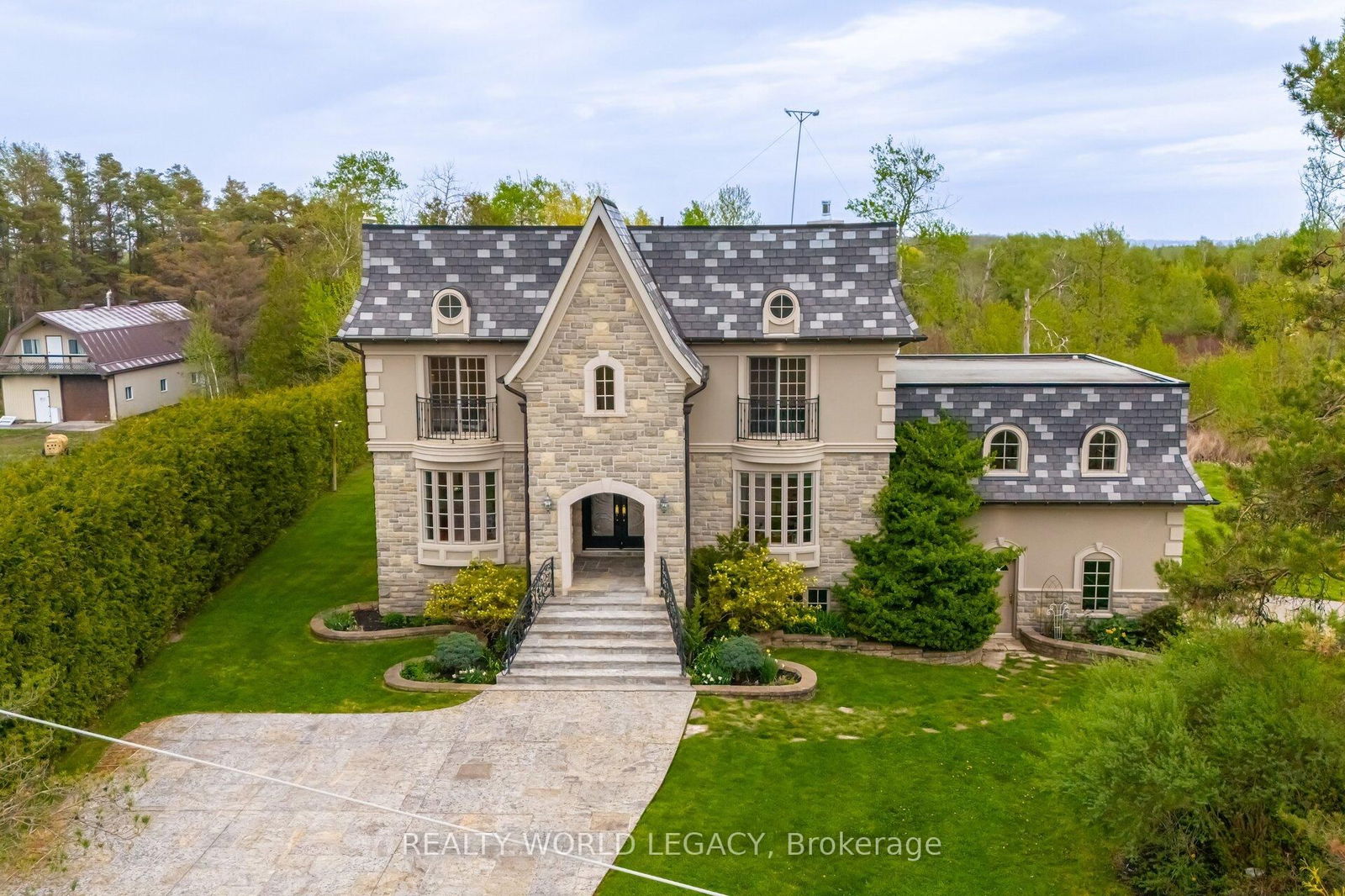 Ask Yourself; Where Can I Find a Detached Home On Over 6 Acres Of Pristine Land And 10 Minutes To All Amenities? What if that home also featured over 3000 sqft of finished living space with a shop on the property? You would likely think it doesn't exist. Well it does. And it's available right now. 4313 20 Sideroad is a house waiting to be your home. This turnkey home features hardwood throughout, fine tiles, upgraded HVAC and upgraded windows. The exterior boasts an expansive composite deck, manicured lawns, forested area and stream. The southern area of the 6+ acres is home to a separate shop/garage with electric service available. The entrance to the house is expansive. Gardens highlight the heated stairs to the protected entrance alcove. Through the double doors is a winding wood stair case adding to the grandeur of the home. To the left is a formal dining room with room for 10 or more. To the right is an office space that allows the occupant a view of the driveway. The rear of the main floor features a generous kitchen. Patio doors allow for easy access to the deck for entertaining during warmer seasons. After dinner or on a rainy day head to the media room. Here you will find expansive views of the deck and yard. Or build a warm fire in the wood burning fireplace. Rounding out the main floor is a massive media room/wet bar. Entertain the family or guests while you watch movies or sports in this bright, versatile room. Upstairs you will find 3 spacious bedrooms each featuring a Juliette balcony. The master bedroom is a true retreat. Featuring hardwood floors, ample natural light and walk-in closet. The 5 piece ensuite is a place to relax. With a separate shower, two vanities and soaker tub, this room is stunning. The secondary washroom features a glass enclosed stand-up shower and pantry. The large second floor laundry is both convenient and functional. Book your private tour today. You won't be disappointed.