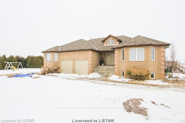 2595 sqft executive raised ranch with approximately 5248 sqft of total living area. Zoned A1, opportunity to have horses, great 4 acres, rural setting overlooking the country side, your own piece of paradise. Features of this wonderful home include cathedral entrance, sunken living room, spacious kitchen with newer appliances and loads of kitchen cupboards and counter space. Upgrades include 2014, newer flooring, hickory engineered hardwood in 3 bedrooms, kitchen cupboards refinished, hickory hardwood flooring, family room, most rooms freshly painted, lower level landing new ceramic flooring, newer master bedroom ensuite 2011 and master bedroom flooring, 45 year shingles (architectural laminate) done in 2012. Loads of improvements done, potential for added living space in lower level. Loads of room and space in this quality home! Entry from garage to lower level.