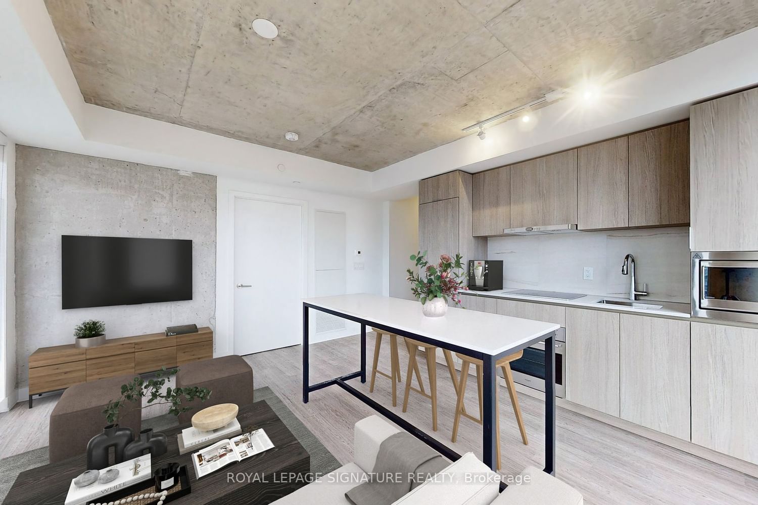 The Garden District Condos! Brand new 2-bed corner suite in Toronto's Downtown East End. Features, stunning unobstructed SE views, 693 sf of interior living space, a large 107 sf balcony, & 2spacious bedrooms with windows. Modern interior w/ laminate floors throughout, 9 foot exposed concrete ceilings, concrete feature walls, & floor-to-ceiling windows. The well-appointed kitchen includes sleek & stylish cabinets, quartz counters, a functional centre island, & mix of integrated & S/S appliances. Steps to countless restaurants, cafes, bars, shops, & public transit.