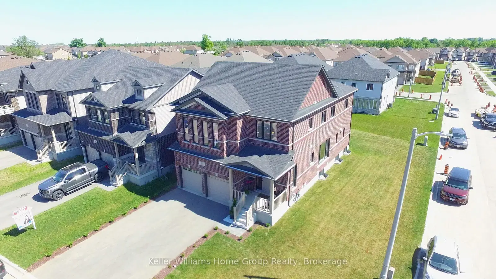 Step into unparalleled modern luxury with this state-of-the-art, custom-built executive home by Fusion Homes (2022), nestled on a prime corner 50ft lot in Kortright East, South Guelph. There are 9-foot ceilings throughout every level of the home. Spanning over 4,000 sq. ft. with 2,850 sq. ft. of meticulously crafted living space and over $300k in premium upgrades, this residence epitomizes modern opulence and comfort. The bright open-concept main level features upgraded hardwood floors, a sleek Napoleon electric fireplace, an extra wide staircase, and a setting with a sophisticated tone. The heart of the home, a custom Brazotti kitchen, boasts quartz countertops and high-end stainless steel wifi appliances, including an energy-efficient induction stove, wifi capability oven and microwave and exquisite cabinetry. Perfect for culinary enthusiasts and entertainers alike, it seamlessly connects to a formal dining room and a versatile main-floor office or fifth bedroom. Upstairs, discover four spacious bedrooms alongside a luxurious primary retreat with spa-inspired finishes, ensuring every comfort is met. Designed for sustainability, the home includes a hot water energy recovery system for enhanced efficiency and reduced utility costs. The lower level offers 1,260+ sq. ft. of potential with bright egress windows and rough-ins for a bath, kitchen, and up to two bedrooms, ideal for an in-law suite or expanded living area. Situated in a coveted neighbourhood near The Arboretum, the University of Guelph, and top-rated amenities, this home offers unparalleled tranquility and contemporary convenience.