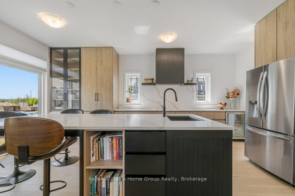Step into unparalleled modern luxury with this state-of-the-art, custom-built executive home by Fusion Homes (2022), nestled on a prime corner 50ft lot in Kortright East, South Guelph. There are 9-foot ceilings throughout every level of the home. Spanning over 4,000 sq. ft. with 2,850 sq. ft. of meticulously crafted living space and over $300k in premium upgrades, this residence epitomizes modern opulence and comfort. The bright open-concept main level features upgraded hardwood floors, a sleek Napoleon electric fireplace, an extra-wide staircase, and a setting with a sophisticated tone. The heart of the home, a custom Brazotti kitchen, boasts quartz countertops and high-end stainless steel wifi appliances, including an energy-efficient induction stove, wifi capability oven and microwave and exquisite cabinetry. Perfect for culinary enthusiasts and entertainers alike, it seamlessly connects to a formal dining room and a versatile main-floor office or fifth bedroom. Upstairs, discover four spacious bedrooms alongside a luxurious primary retreat with spa-inspired finishes, ensuring every comfort is met. Designed for sustainability, the home includes a hot water energy recovery system for enhanced efficiency and reduced utility costs. The lower level offers 1,260+ sq. ft. of potential with bright egress windows and rough-ins for a bath, kitchen, and up to two bedrooms, ideal for an in-law suite or expanded living area. Situated in a coveted neighbourhood near The Arboretum, the University of Guelph, and top-rated amenities, this home offers unparalleled tranquility and contemporary convenience.