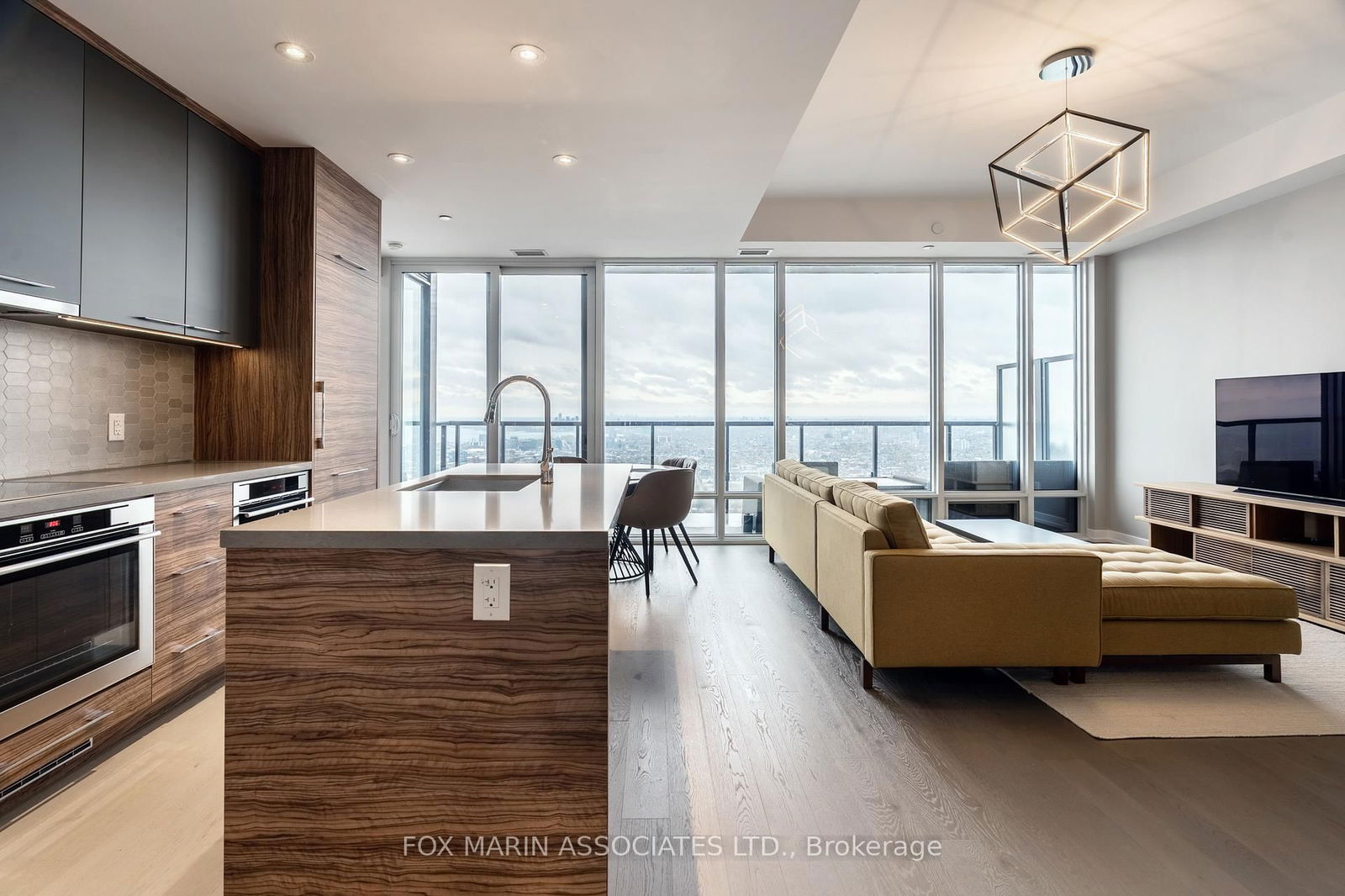 Experience elevated downtown living at its finest in this furnished two-bedroom, two-bath residence perched high above the city on the 54th floor of one of Toronto's most distinguished addresses. Wake up to panoramic South West views that stretch from the shimmering waters of Lake Ontario to the CN Tower and beyond to Mississauga. Step out onto your balcony to take in the city's rhythm from sunrise to sunset. Inside, the kitchen impresses with high-end finishes and a full suite of luxury appliances, including a Liebherr refrigerator and AEG cooktop, oven, microwave, and dishwasher. A spacious centre island anchors the open-concept space, providing room for seating -perfect for morning coffees or evening wine with friends. The primary bedroom offers a serene retreat with a generous walk-through closet fitted with organizers and a spa-inspired five-piece ensuite featuring double sinks, a glass-enclosed shower, and a deep soaker tub. The second bedroom is surprisingly large for downtown Toronto and includes a full closet and sliding door for added privacy. This suite comes with one valet parking space. Simply call down, and your car is ready when you are! Enjoy direct indoor access to St. Patrick Station for effortless commuting, and take advantage of the exclusive Sky Club fitness studio. Sky Club features fitness studios, steam rooms, saunas, an 80-foot lap pool, and a jacuzzi. Located in the heart of Toronto's Financial and Discovery Districts, you're steps from Queen Street, the Eaton Centre, the AGO, OCAD, and some of the city's most celebrated restaurants and cafés, including Momofuku, Aloette, and Dineen Coffee Co. Luxury, convenience, and breathtaking views. This is downtown living, perfected.
