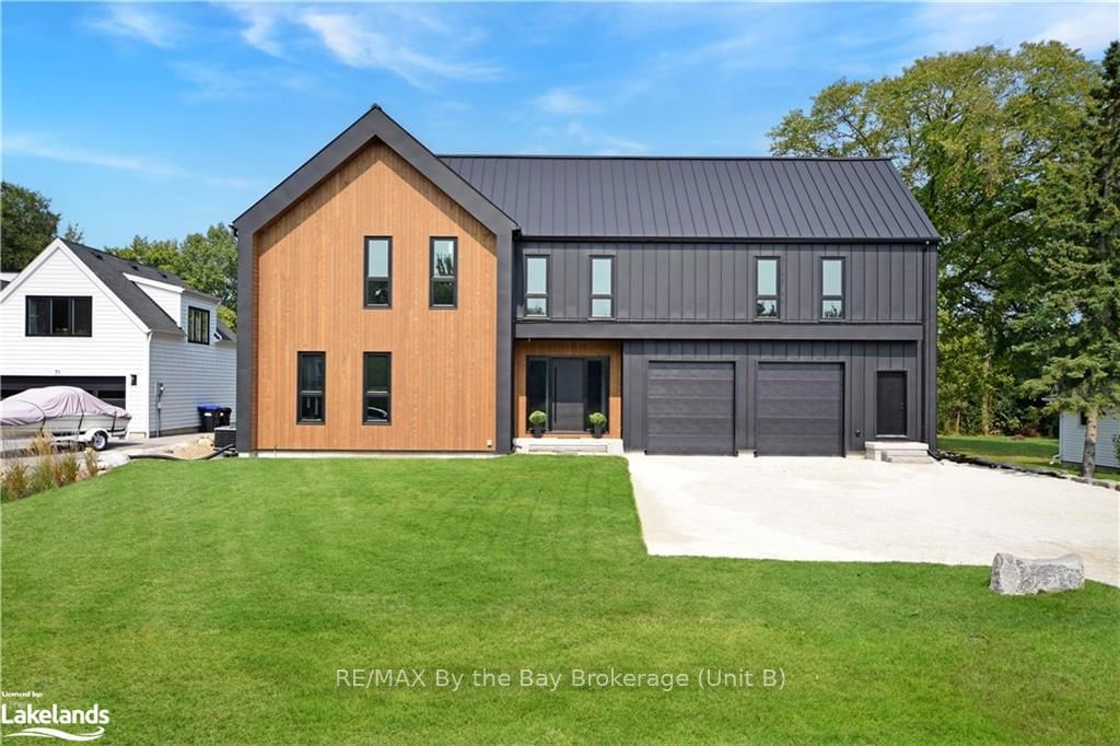 Welcome to a masterpiece of modern design and meticulous craftsmanship. This luxurious Scandinavian-style residence, nestled on a generous 90ft by 200ft lot in Collingwood offers an unparalleled blend of elegance and functionality. The home's striking exterior features a sophisticated fusion of Scandinavian Spruce wood siding and 24-gauge standing seam steel siding and roof, crowned with a 50-year warranty. Step through the grand 40" front door into an impressively crafted entrance with heated floors. A well-appointed main floor laundry room, with Whirlpool appliances. The open-concept living, dining, and kitchen area exudes luxury with its 7.5" Muskoka Custom Finishing hardwood floors, a Napoleon fireplace, and a dramatic dark tile feature wall. The chef's kitchen is a culinary haven, showcasing high-end KitchenAid smart appliances and a Moen touch-less, WiFi-capable faucet. Adjacent to the kitchen, an office with pocket doors and access to the rear covered deck. The custom staircase by Stairhaus Inc. makes a stunning architectural statement, guiding you to the upper level. Here, a spacious family room complements 3 beautifully appointed bedrooms. The primary suite is a luxurious sanctuary, featuring a walk-in closet and a 6pc private ensuite, plus a walkout to a covered Duradek waterproof deck. A 4pc semi-ensuite bathroom and a thoughtfully designed 2pc bathroom on the main floor cater to both privacy and convenience. Above the garage, a legal second-dwelling apartment presents an excellent opportunity for additional income or guest accommodation. With its own private entrance, this charming apartment features an open-concept living, dining, and kitchen area with Frigidaire appliances, a stackable washer and dryer, a cozy bedroom, and a stylish 3pc bathroom. A set of 9ft x 10ft garage doors with drive-through provides an ample amount of garage and storage needs. This custom-built Scandinavian-style home stands as a testament to superior quality and refined living.