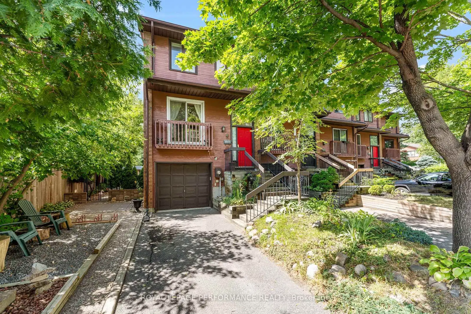Urban Oasis in Woodpark - Spacious End Unit Townhome w/Walkout! Experience the perfect balance of city convenience and natural tranquility in Woodpark, one of Ottawas most connected and desirable neighbourhoods. Walk to shops, restaurants, schools, and Carlingwood Shopping Centre, or enjoy quick access to the Ottawa River pathways, Westboro Farmer's Market, Britannia Beach, and Mud Lake. Transit is steps away with bus routes and future LRT stations nearby, plus Highway 417 just minutes from your door. Set on a unique wide lot, this bright and spacious end-unit townhome boasts a professionally landscaped side and west-facing backyard (2021) with stone patios, perennial gardens, raised vegetable beds, mature trees, and open views with no direct rear neighbours. A covered patio, storage shed, and generous outdoor space create an inviting setting for relaxation, gardening, or play. Inside, sunlight pours in from three directions, enhancing the open layout. Hardwood flooring spans both the main and upper levels. The sun-filled kitchen features stainless steel appliances and a peninsula breakfast bar, while the dining and living room is impressively spacious, complete with a wood-burning fireplace and patio doors to the deck and yard. Upstairs are 3 well-sized bedrooms, including a primary with wall-to-wall closets and cheater access to a refreshed 4-piece bath. A highlight of the home is the versatile walkout lower level--perfect as a family room, office, studio, or guest suite--with double doors to the backyard, a 2-piece bath, mudroom with garage entry, laundry, and ample storage. This home offers urban convenience, modern comfort, and flexible living in a peaceful setting.