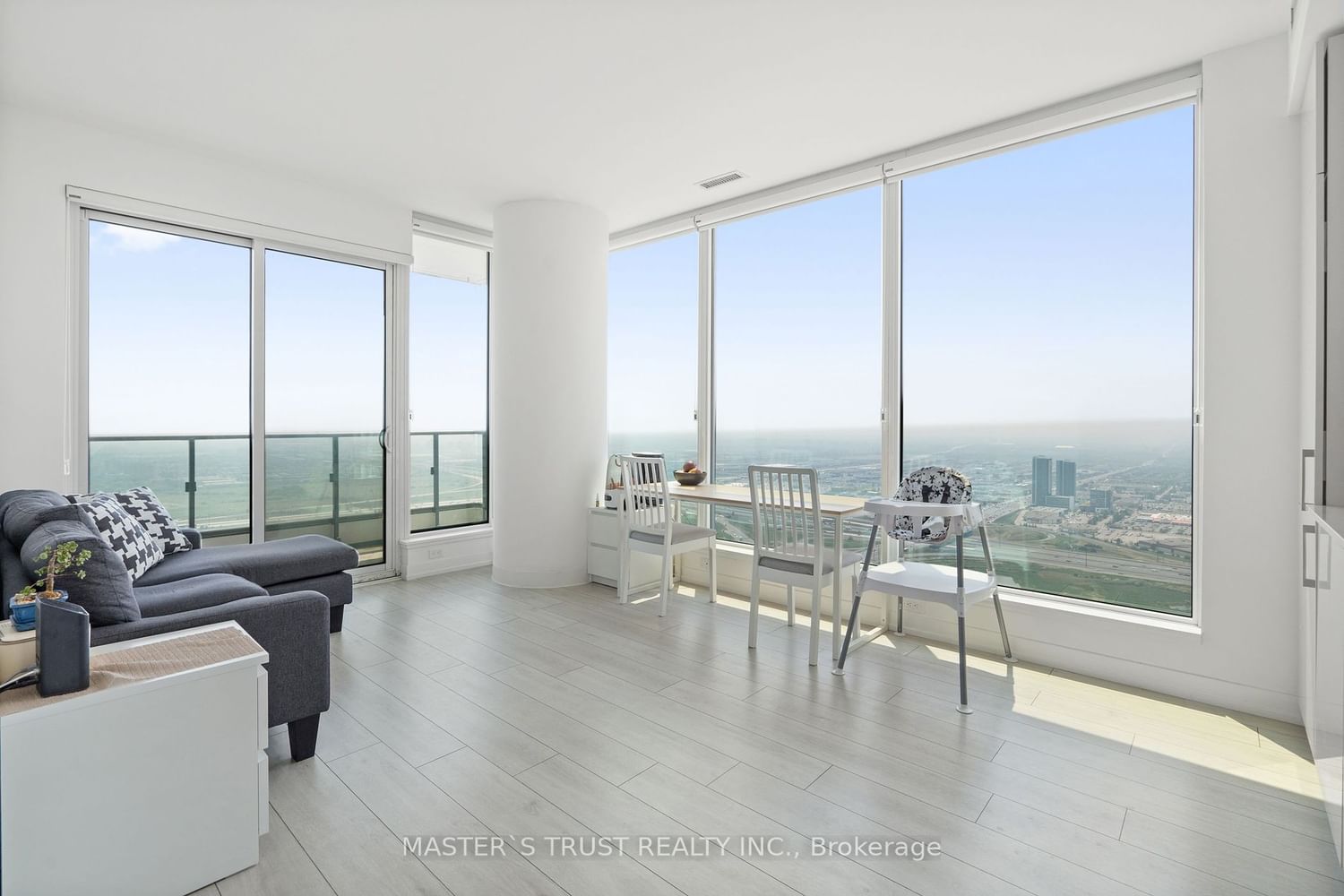Welcome To Luxurious South-West Unobstructed View of Corner Unit with 2 Bedroom + Den in Transit City 2 (60th Floor!). Practical Layout featuring 778 Sq.Ft. & Balcony 117 Sq.Ft and 9ft Smooth Ceiling Throuhgout. Modern kitchen with quartz counter-top with B/I Appliances, laminate and porcelain flooring. Den with sliding doors can be used as an office/bedroom. Steps To Public Transit, YMCA, Library & Community Centre. Easy Access To Shops, Groceries, Dining, Park, Hwy 400, Hwy 7 And 407, Walmart, and Costco. Amenities Include: Rogers Ignite High Speed Internet Included, 24 Hr Conceirge, Party Room, B.B.Q Outdoor Terrace, Golf & Sports Simulator & Lounge & More!