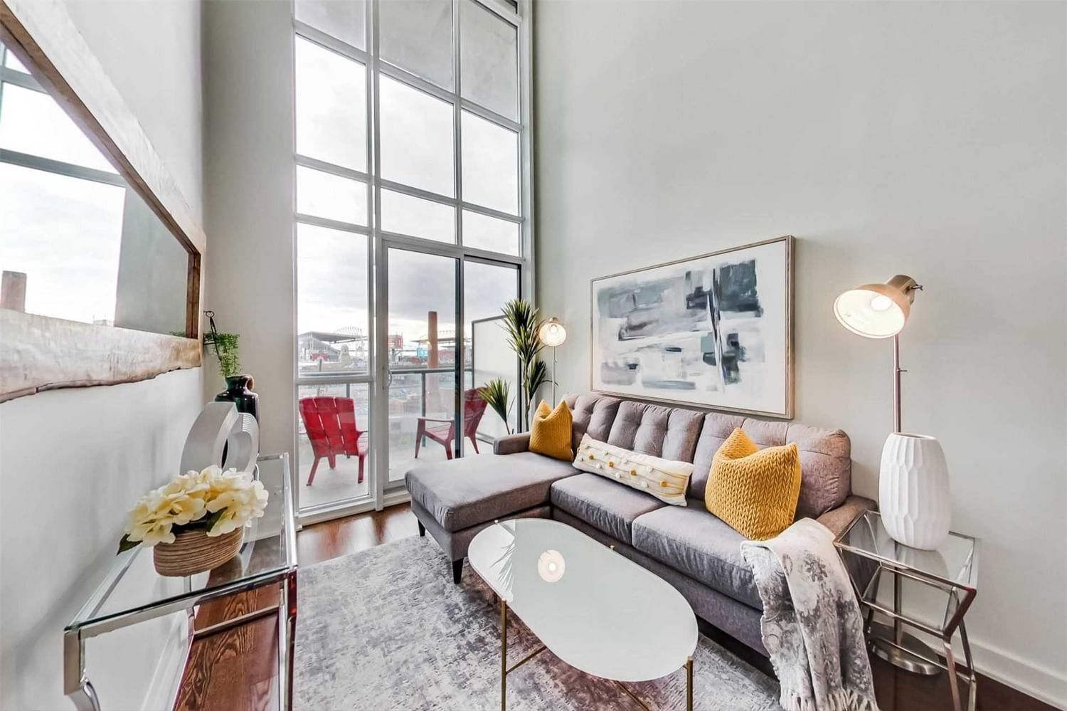 Beautiful 2 Storey Loft In The Heart Of Liberty Village With 17-Foot-High Exposed Concrete Ceilings, Floor To Ceiling Window With South Facing Water View. This Open Concept Floor Plan Includes A Modern Kitchen With Natural Light All Day. Located Near Restaurants/Bars, Ttc, Parks, Grocery Store And Commercial Plaza. Amenities Included Party Room, Business Center, Basketball Court, Yoga Studio, Full Size Gym, Bbq, Dog Wash Station & Visitor Parking. Picture Are From Previous Listing.
