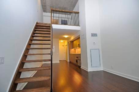 Luxury In Liberty Village! Brand New Liberty Market Lofts! This Spacious 2 Level, 1 Br + 2 Bath W/Parking & Locker, Loft Style Condo, Offers Approx. 805 Sq Ft Of Living/Entertaining Space Plus A Private 85 Sq Ft Balcony. The Living Dining Room Boasts A Soaring 17 Ft Ceiling, W/Floor To Ceiling Windows, The 2nd Floor Master Includes A Private Ensuite Bath, And A Giant W/I Closet! European Style Kitchen/Cabinetry And Hardwood Throughout!