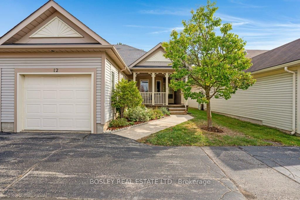 Welcome to Livingstone Circle - ADULT COMMUNITY for ages 55+, located in Kitchener's Stanley Park neighborhood. The Cottages of Livingstone Circle are spacious bungalows with garages on leased land. Unit 12 is a bright 2-bedroom bungalow townhome with 3 baths that is newly updated and is move-in ready. Gorgeous hardwood and fresh paint throughout the main floor. The kitchen has gorgeous maple cabinetry and was recently renovated. The primary bedroom is generous with walk in closet and vaulted ceiling. The main 4 pc bath has been updated with quartz counters, heated flooring, jetted tub and rain water shower. The large partially finished basement offers plenty of potential and storage while the 2-piece baths both in the basement and main foyer add convenience. The homes location offers quick access to many amenities, parks and open spaces. Enjoy maintenance-free living. Residents can enjoy access to The Cottage community center for social gatherings and activities. Relax on the covered front porch or back deck where it's very private with no rear neighbors. Take a moment to view marketing video and the other photography showcasing the home.