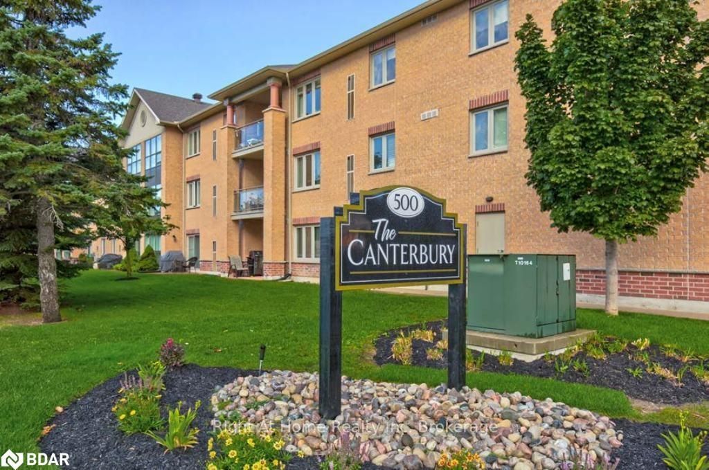 *THE CANTERBURY* IN SW BARRIE - RARELY OFFERED PENTHOUSE LEVEL / CORNER SUITE / WITH BALCONY - 902 SF - 2 BEDROOMS - 2 BATHROOMS - LARGE WINDOWS - 2 WALK-OUTS TO BALCONY (10' x 4') WITH VIEWS OVER GARDEN / PARKETTE AREA - PRIMARY BEDROOM HAS WALK-IN CLOSET - INSUITE LAUNDRY - 6 APPLIANCES - OWNED HOT WATER TANK - ONE DEEDED PARKING SPACE - PARTY ROOM ON LEVEL 2 - BUILDING HAS ELEVATOR - CLOSE TO ALL AMENITIES.