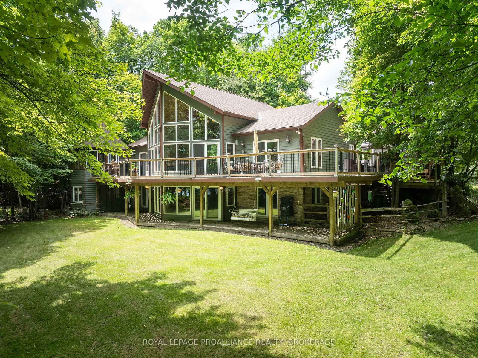 Make your dream a reality when you view this Buck Lake waterfront property with over 440 ft of stunning waterfront and nearly 4 acres of beautifully manicured property. Extremely rare waterfront that has a small hard bottom sand beach for the little ones, yet 15-20 feet of deep waterfront off the dock and raft; no weeds! Paths and trails through the woods that lead to stone patio sitting areas, fish ponds, creek and more. Absolutely gorgeous. Built in 2003, the 1700 sq ft viceroy style elevated bungalow is perfectly placed on the property and the fully finished lower level is grade level walk out, beautiful for entertaining. The main floor is open concept with 2 bedrooms (primary bed has ensuite bath), a loft that overlooks the main floor that is a perfect flex room (could be bedroom, games room, office, etc). The lower level is built right on rock with an attractive/unique rock wall, a 650 sq ft rec room (pool table stays) with fireplace and a bedroom with ensuite bath. The property offers a gazebo type room off the east deck with a hot tub that stays and off the west deck is another gazebo that is 2 storey and allows for a games room or bunkie on top and a craft/hobby room on the lower, all with hydro. Energy efficient radiant heating and 3 built-in heat pump wall units that provide your summer's air conditioning. High quality built home with stone and cedar exterior. Newer shingles on the house and garage. Good quality windows allow for tons of natural lights and amazing views. The detached garage is 3+ car with an attached 3 bay drive shed. The front of the property is open manicured lawns that are perfect for outdoor games, entertaining and extra parking if needed. Located on the West side of Buck Lake with lots of beautiful lake to enjoy and explore. Just 35 minutes north of Kingston or 15 south of Westport via Perth Rd. Welcome to 507 Frye Lane.