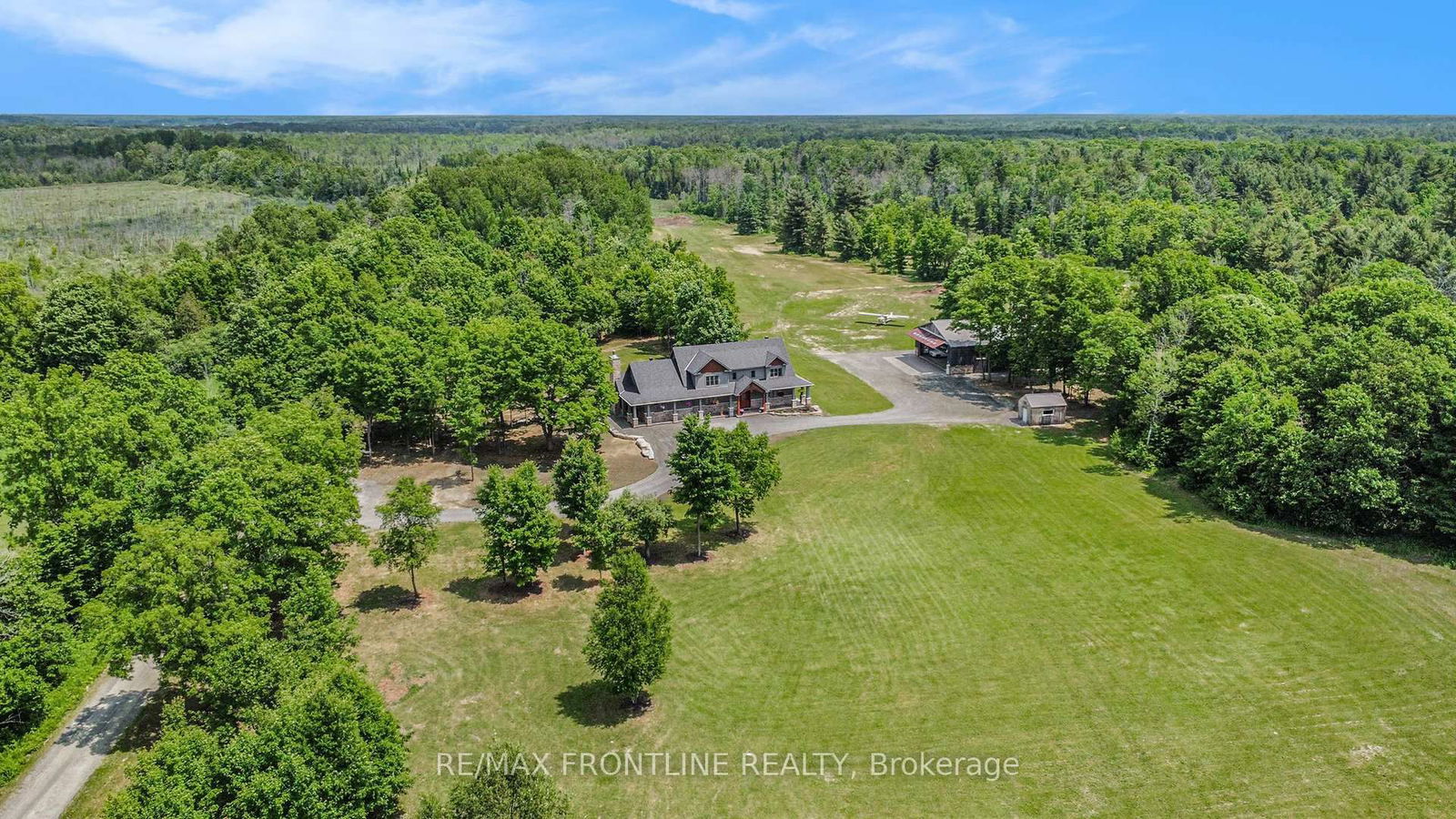 This is more than a home-it's a lifestyle. Set on an extraordinary 175-acre estate, this one-of-a -kind property offers unmatched space, privacy, & freedom. With room to land small aircraft, a custom-built hangar/workshop, & a well-planned, custom 4-bed, 5 bathroom home, it's the perfect fit for aviators, horse enthusiasts, homesteaders, or anyone dreaming of wide-open living. As they say-they're not making any more land! The Heart of the home is a show-stopping Sunspace sunroom, complete with heated floors & a floor to ceiling wood fireplace, offering a warm, light-filled space to relax year-round while taking in expansive views of your property & Hottub! Step inside to a bright, open-concept layout where style meets function. A spacious living room flows seamlessly into a gourmet kitchen, complete w/stainless steel appliances & a striking 10ft island topped with charcoal quartz countertops. The mn-flr primary suite offers a serene retreat, featuring a private patio, a spa-inspired ensuite, & walk-in Closet custom-finished with premium DeLaurier cabinetry. Upstairs offers three spacious bedrooms, walk-through closets to ensuite or main bath access including a soaker tub for added comfort. The fully finished lower level expands your lifestyle possibilities with large Rec room, bar area, home gym & games room. Highlights - Grass landing strip for small aircraft; Heated 50'X70' custom built hangar/workshop perfect for small aircraft, storing toys, or running a business right from home; Newly built greenhouse, perfect for horticulture enthusiasts or those pursuing sustainable living; 175 acres of wide-open versatile land & trails-there's room to roam, ride & explore. Whether you are into horseback riding, tearing up the trails on your dirt bike or ATV, or simply enjoying the freedom to grow & play your way-this property is your personal outdoor playground. "This modern farmhouse by Paul Ferguson Construction LTD showcases timeless design & refined luxury."