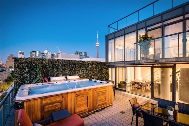 Boutique Corner 2 Storey Penthouse In The Fashion District With Large Terrace And 15' Jacuzzi Pool. Loft-Like Feel, Approximately 1,576 Sq.Ft., Over 600 Sq.Ft. Terrace, 2 Bedrooms Plus Den And 3 Bathrooms. Designer Kitchen With Gas Stove, Stainless Steel Appliances And Hardwood Floors Throughout. 2 Parking Spots And 1 Oversized Locker. A Perfect Downtown Pad! (Master Bedroom Is Currently Being Used As The Living Room).