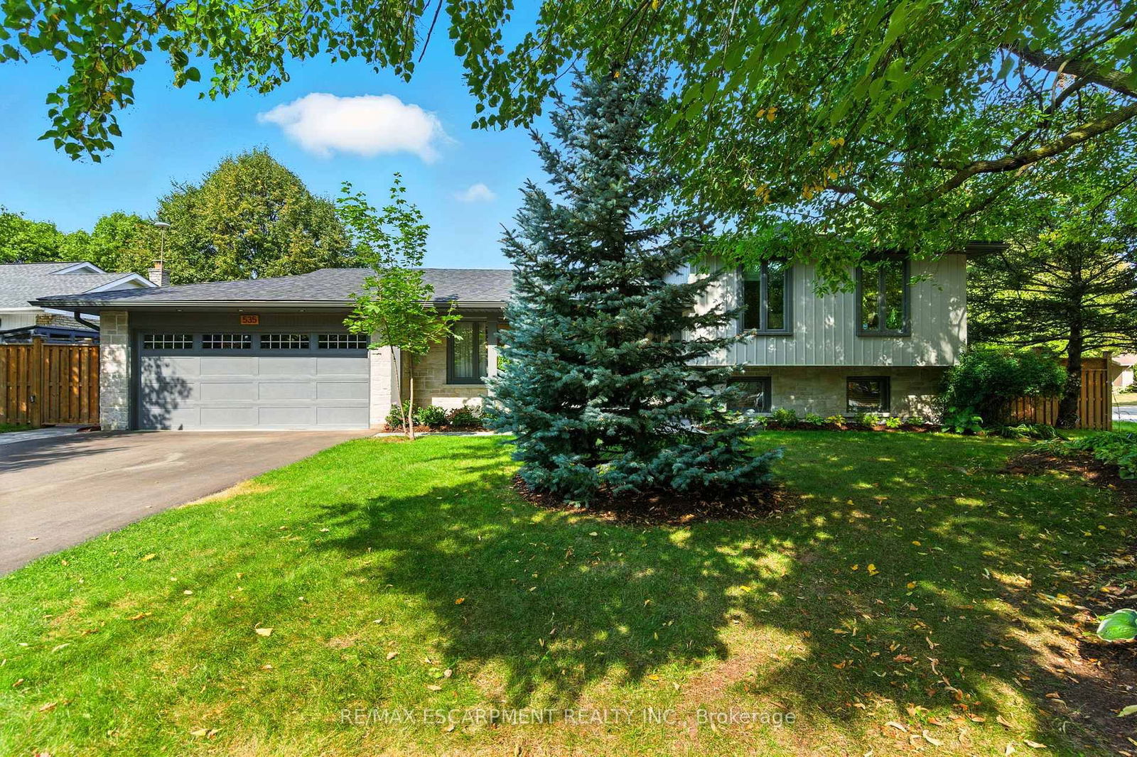 535 Vanguard is a beautifully renovated, move-in-ready detached home on a premium corner lot in a quiet, family-friendly neighbourhood. The professionally landscaped front and backyard feature a fully fenced yard with a patio, gazebo, solar lighting, and lush gardens. A double-car garage offers interior access and built-in shelving. Inside, the open-concept main floor boasts crown moulding, hardwood floors, and large windows that fill the space with natural light. The kitchen includes shaker-style cabinetry, natural stone countertops, and a large island with seating for three. Upstairs offers three spacious bedrooms and a 5-piece bathroom. The lower-level family room features a gas fireplace, above-grade windows, and a separate den ideal for a playroom or home office. The finished basement includes a recreation area, dry bar, laundry room, and ample storage. Conveniently located near top-rated schools, shopping, parks, and transit, this home offers excellent access to everyday amenities. Enjoy local shops and restaurants in Bronte Village, South Oakville Centre, and nearby plazas. Bronte GO Station is just minutes away with direct service to downtown Toronto, plus easy access to Oakville Transit and major highways. Nearby parks such as Bronte Heritage Waterfront Park and Coronation Park provide scenic outdoor spaces for recreation and relaxation.