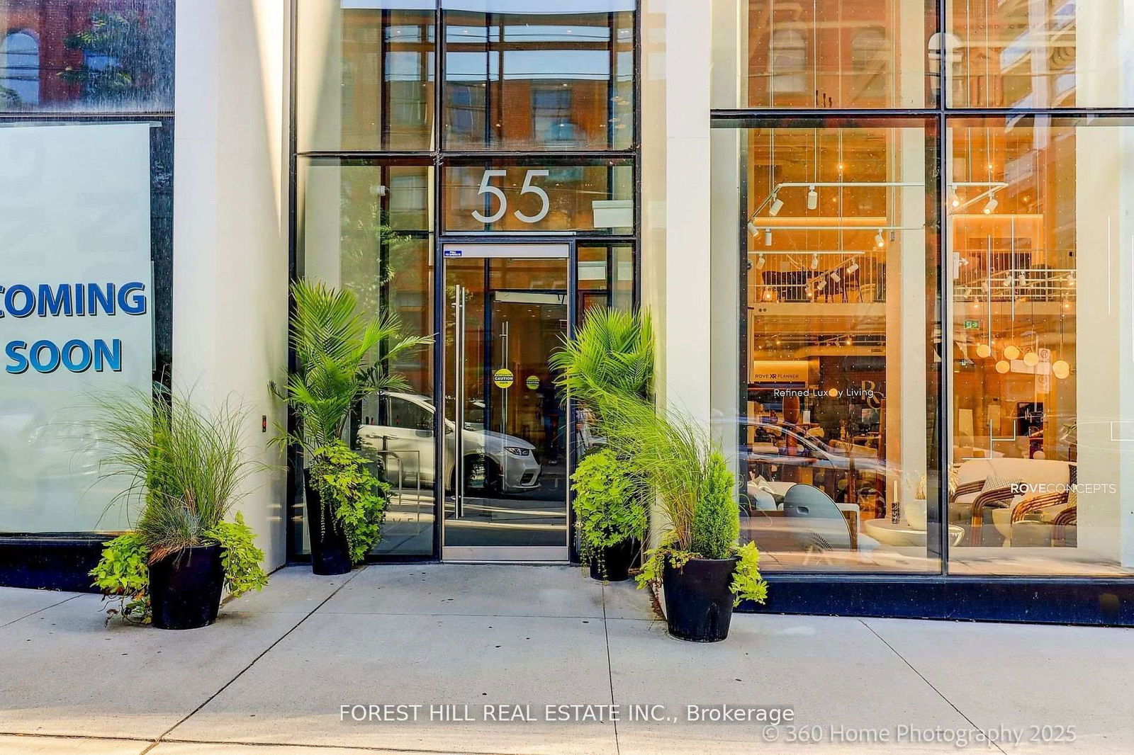 Welcome to EAST 55, Toronto's chic condo located on quiet, leafy Ontario Street. This 1 BR plus Den, HIROSHIMA MODEL is the ideal home for anyone looking for a stylish urban retreat. Bright open concept LR has wall-to-wall glass windows with a walk-out to a huge balcony with an unobstructed view. The soaring 10.5 ft exposed concrete ceiling provides a spacious feel. Freshly painted in a modern color palette. Extended Kitchen cabinets (30"), Drawer under the oven, under-cabinet lighting and a smart quartz Island defines this modern kitchen. The Spa-like bathroom boasts elegant marble flooring and shower walls. Friendly concierges and secure access make this a desirable place to call home. Location is perfect, with proximity to the Distillery district, St.Lawrence market, King street Street cars, George Brown College, and steps to TTC. Excellent walking score. Hurry! This sophisticated condo won't last!!!