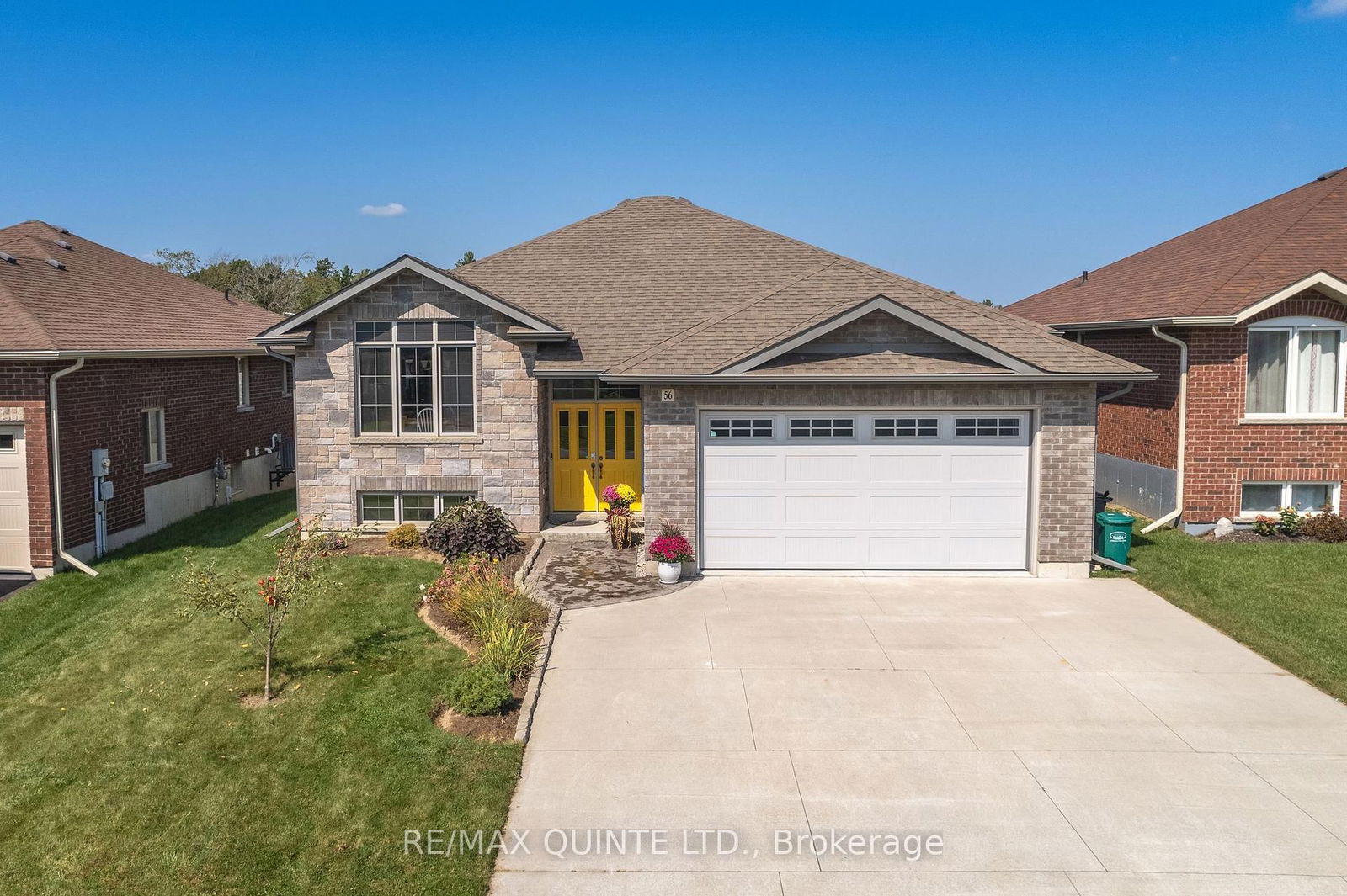 Welcome to 56 McIntosh Crescent a stunning, move-in-ready raised bungalow built in 2018. Thoughtfully upgraded and meticulously maintained, this 5-bedroom, 3-bathroom home offers the perfect blend of style, comfort, and functionality. Step inside to an open-concept main floor flooded with natural light. The family room, enhanced by a tray ceiling with pot lights, flows effortlessly into the dining area and chef-inspired kitchen. Featuring terrazzo-quartz countertops, a composite granite double sink, stylish tile backsplash, and premium cabinetry, this kitchen is both beautiful and highly functional. The main-floor primary suite is a true retreat, complete with a spacious custom walk-in closet and a luxurious ensuite showcasing a double vanity with his-and-hers sinks and a sleek stand-up shower. Downstairs, the bright and spacious lower level offers a large rec room, a full bathroom, and three generous bedrooms including one with a walk-in closet, making it ideal for guests or growing families. Step outside to enjoy the deep, fully fenced backyard (2021), featuring a composite deck with three-panel patio doors, a stamped concrete patio, and plenty of room to entertain or relax. The triple-wide concrete driveway and insulated double-car garage provide ample parking and storage. Additional updates include custom living room cabinets (2021), front landscaping (2023), and a new kitchen backsplash (2024).Located in a sought-after neighbourhood close to parks, schools, shopping, CFB Trenton, and Hwy 401, and just a short drive from Sandbanks, Presquile, and North Beach Provincial Parks this is the ideal home for families, professionals, or outdoor enthusiasts alike. Don't miss your chance to make this exceptional property your next home!