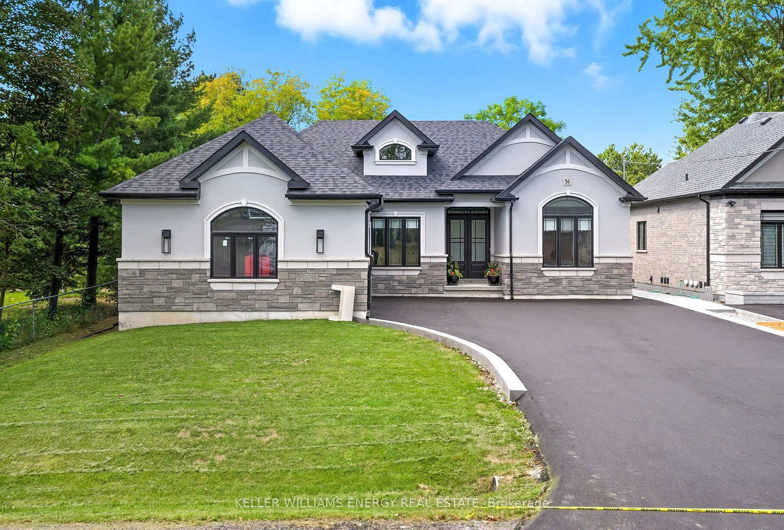 Exceptional Custom-Built Bungalow in the Heart of Whitby. Discover this stunning DeNoble-built bungalow, offering 3 bedrooms and 3 bathrooms on a premium lot in one of Whitby's quiet enclaves. Built in 2023, this home spans over 2,200 sq. ft. with a separate front entrance and oak stained stairs to the unfinished basement with large egress windows perfect for future in-law or income potential. The living room impresses with soaring 11.5 ft. ceilings, black-stained beams, a sleek electric fireplace, 5" White Oak Flooring and custom millwork display shelving. The open-concept kitchen is a show stopper, featuring River Oak wood-grain cabinetry, a centre island, pantry, upgraded appliances, and a bright eat-in area with oversized sliders. An elegant arched entrance leads to the Butlers pantry and formal dining room, making this home ideal for both everyday living and entertaining. Principal Bedroom with large walk-in closet and 4 pc ensuite with soaker tub and private water closet. Garage access into the main floor Laundry. 7' Doors throughout.