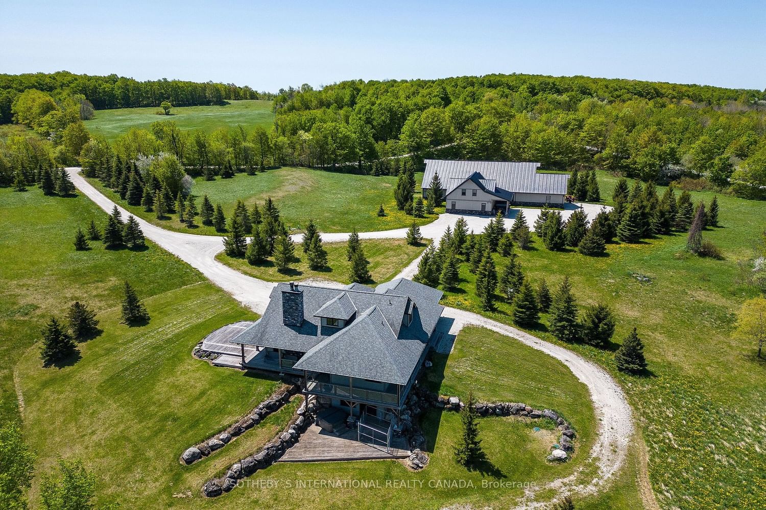 Pickleball! Hockey! Entertain! Live your best life - one of a kind 24 acre property with private indoor arena featured on Hometown Hockeythat will be the envy of all - 3 on 3 rink- 45'x95' ice surface & pickleball court ready. your very own Zamboni, state of the art change rooms, large steamshower, viewing gallery with full luxury pub/bar, large loft with 80" T.V. for the big game & hot tub for relaxing after a fun filled day. Walk over to thestunning custom 3+1 bedroom home/chalet with open concept chefs kitchen, stone fireplace, multiple walk-outs, main floor primary suite and anadditional 2 beds & full bath on the upper level. Fully finished lower with walk-out, media room, pool/games room & guest bedroom. This is an entertainersand sports enthusiasts dream!