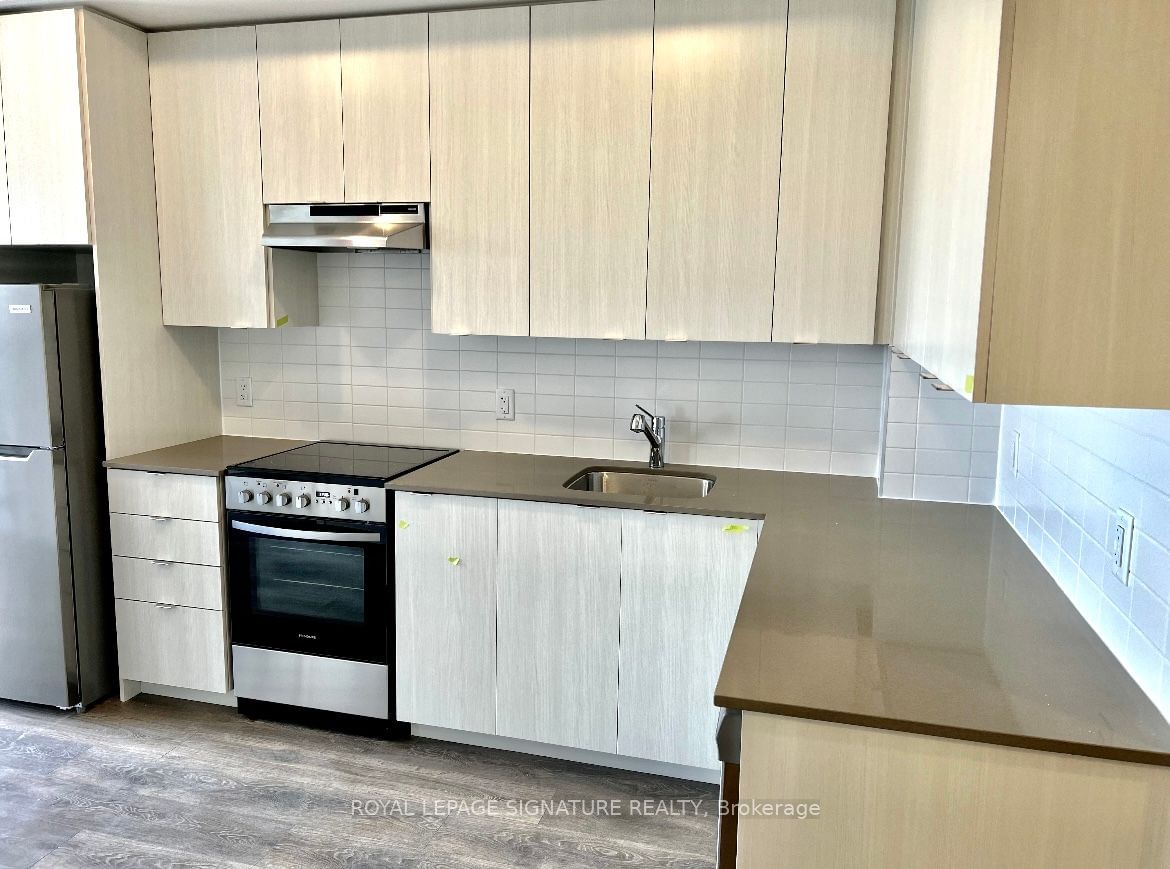 Welcome to Daniels' newly built OMG2! This pristine, 1-bedroom plus den unit is the perfect choice for modern living. The den offers a flexible space ideal for a home office or a cozy kid's bedroom. Situated on the convenient ground floor, this unit boasts a charming small terrace/patio for outdoor enjoyment. The kitchen is a chef's dream with brand-new stainless steel appliances and a sleek quartz countertop. Additionally, you'll love the convenience of in-suite laundry. You're just steps away from transit, grocery stores, shopping centers, restaurants, and schools. One underground parking spot is included. Don't miss the opportunity to make this immaculate unit your new home. Tenants to pay utility bills for gas, hydro, and hot water tank rental. Tenant liability Insurance and a refundable key deposit are required. Landlords looking for AAA Tenant.