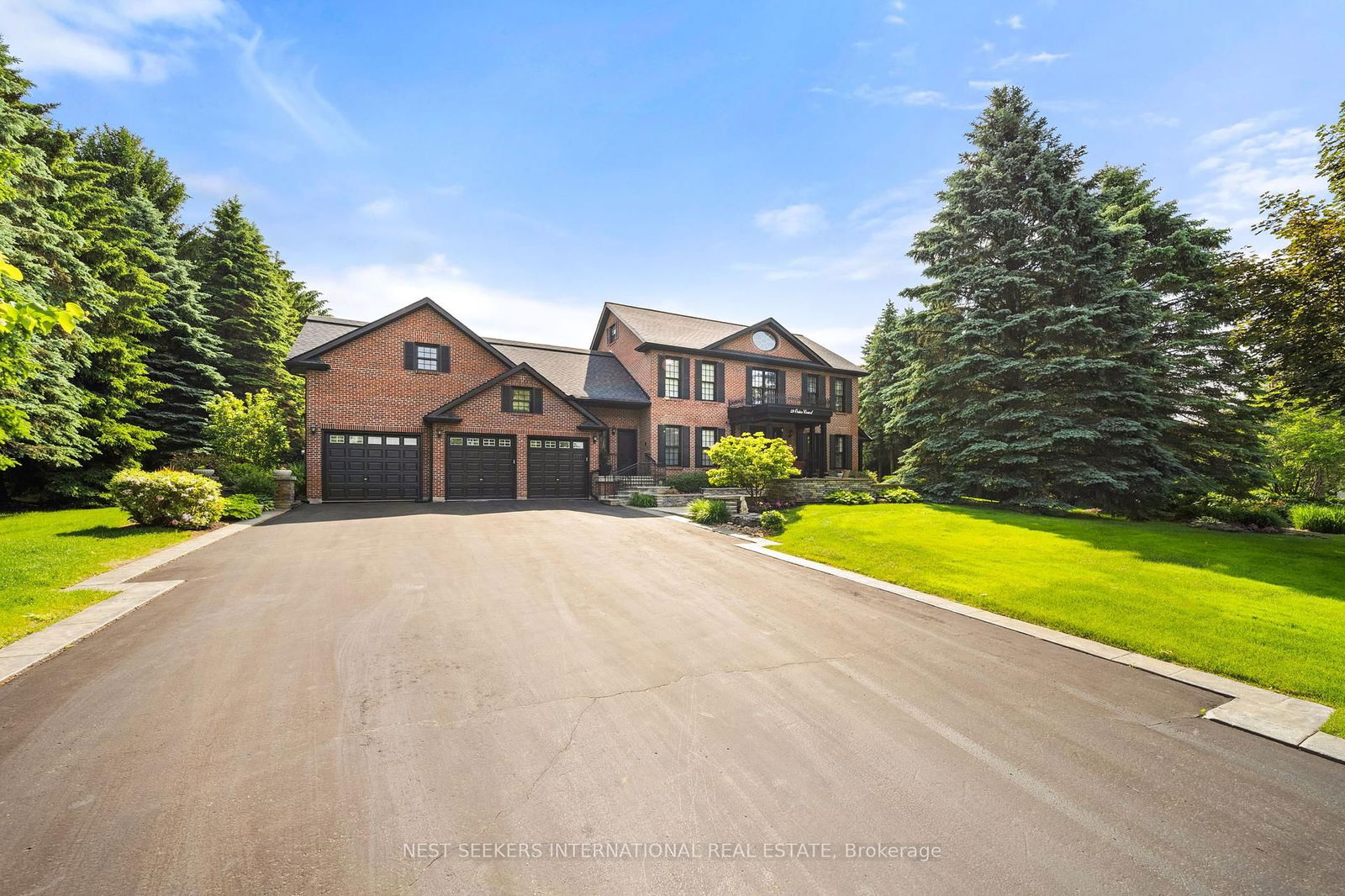 Welcome to this exceptional family estate, where refined elegance meets everyday comfort all set against a backdrop of natural beauty. Beautifully located in a prestigious estate community and set on over an acre, this thoughtfully designed home offers an abundance of high-end features and luxurious finishes. From the moment you arrive, you'll appreciate the care and attention that's gone into every detail. Inside, the heart of the home is a spectacular gourmet kitchen designed with both form and function in mind, complete with premium appliances and elegant finishes. The two-storey family room features soaring windows that flood the space with natural light and overlook the lush gardens, anchored by a stunning wood-burning fireplace that adds warmth and charm. The main floor also includes a private office, formal living and dining areas with walkouts to a secluded terrace, and a convenient second-floor laundry room. Upstairs, generously sized bedrooms provide comfort and privacy, including a large loft area that can easily be converted into a 5th bedroom. The finished lower level offers a full second kitchen, ample storage, a walk-up to the garage, and an ideal space for extended family or entertaining guests. Step outside and experience true resort-style living in the beautifully landscaped backyard. Features include an 18 x 38 sports court style in-ground pool, relaxing outdoor jacuzzi, Muskoka-style fire pit, vegetable garden, and a fully equipped outdoor kitchen with integrated sound system. The property also offers full irrigation throughout the front and backyard, servicing all gardens and lawn areas, making maintenance effortless. With three oversized garages, beautiful surroundings, and a location that offers both serenity and prestige this meticulously maintained home is truly a rare find. If you're seeking privacy, space, and timeless quality in a quiet upscale neighborhood, your search ends here.