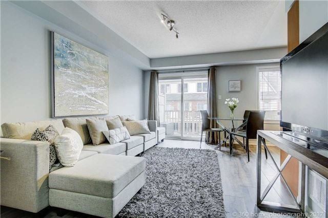 Rarely Offered 2+1 Bedroom Stacked Townhouse. In High Demand Complex. End Unit With Rare Bonus Den. Great Location, Close To Community Center. Spacious Family Room With W/O To Large Terrace For Bbq + Entertaining Guests. Master Bedroom With His+Hers Closets. 2nd Bedroom Has Gorgeous South Toronto Skyline View. Direct Access To Garage. 2 Parking Spots (1 Garage/1 Driveway) Lots Of Visitor Parking. Close To Hwy 403+Qew, Go Station, Utm, Sq1, Home Depot, Loblaw