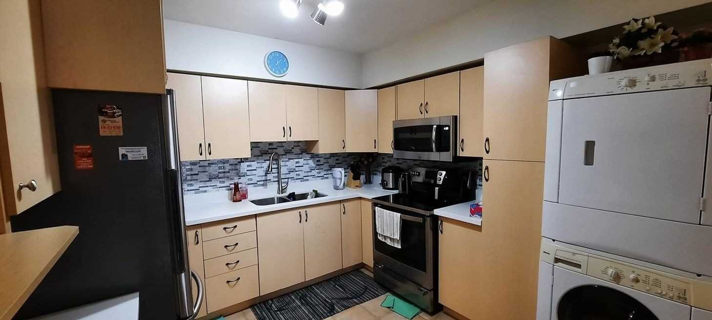Neatly Maintained Townhouse. Enjoy Your Own Frontyard. Wide Living Room In An Open Access To The Kitchen. Almost New Stainless Steel Stove, Hood And Fridge. Lots Of Storage. You Have Your Own Ensuite, Washer And Dryer. Good Sizes Of Two Bedrooms With Their Own Closets. Painted And Tiled Flooring. Ground Floor Unit With Direct Access To Main Road. Few Minutes Walk To Commercial Plazas, Elementary And Secondary Schools And Ttc Bus Stops.