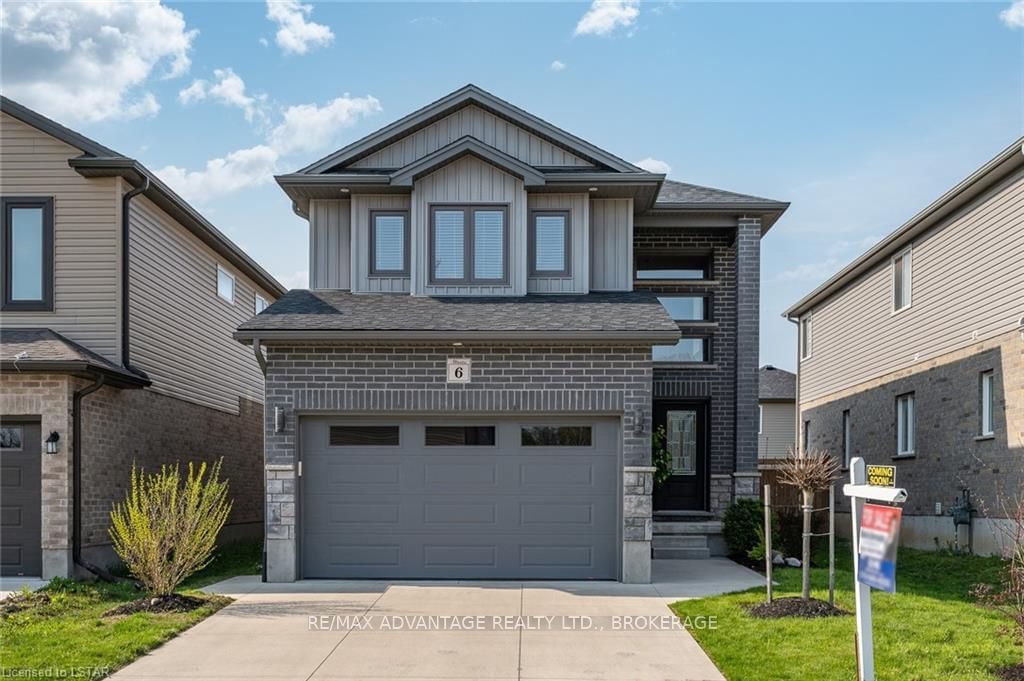 Welcome to 6 Hayes St, stunning Two Storey 6 year old home with 3+1 Bedrooms, 3.5 Bathrooms, 1.5 car garage with double driveway and finished basement. Welcome foyer to open second floor, living room with electric fireplace, kitchen with quartz counter tops, island, modern backsplash, up to the ceiling wall cabinets, Pantry & stainless-steel appliances. Formal dining room, Powder room, laundry room, access from the garage, and storage. Beautiful engineer hardwood floor, ceramic tile, modern light fixture, neutral paint colors complete the main floor. Second floor features a Primary bedroom with tray ceiling, Walk-In Closet, and a Luxury 3 Pc En-Suite, Two good sized bedrooms, and 4 pc full Bath. Totally finished basement with a bedroom, 3pc bath, storage, and vinyl floors. The back yard is completely fenced with a concrete patio. Great school district, easy access to highway 401 , close to Victoria Hospital, 5 minutes to downtown, and many other amenities. Book your showing now! You wi