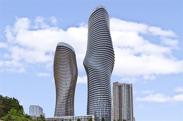 Live In Luxury In Square One's Iconic Marilyn Monroe Towers! This Spacious 2Bed+Den, 2 Washroom Unit Has 975 Sq Feet Of Living Space And A 300Sq Foot Balcony With Breathtaking Views. Open Concept Living Area. Kitchen Features Beautiful Dark Wood Cabinetry, Mirrored Backsplash, And Stainless Steel Appliances. Thousands Spent On Upgrades Including Dark Wood Floors, Granite And Marble Counter Tops Throughout. Enjoy The 30K Sq Ft Of Amenities!! *Virtual Tour*