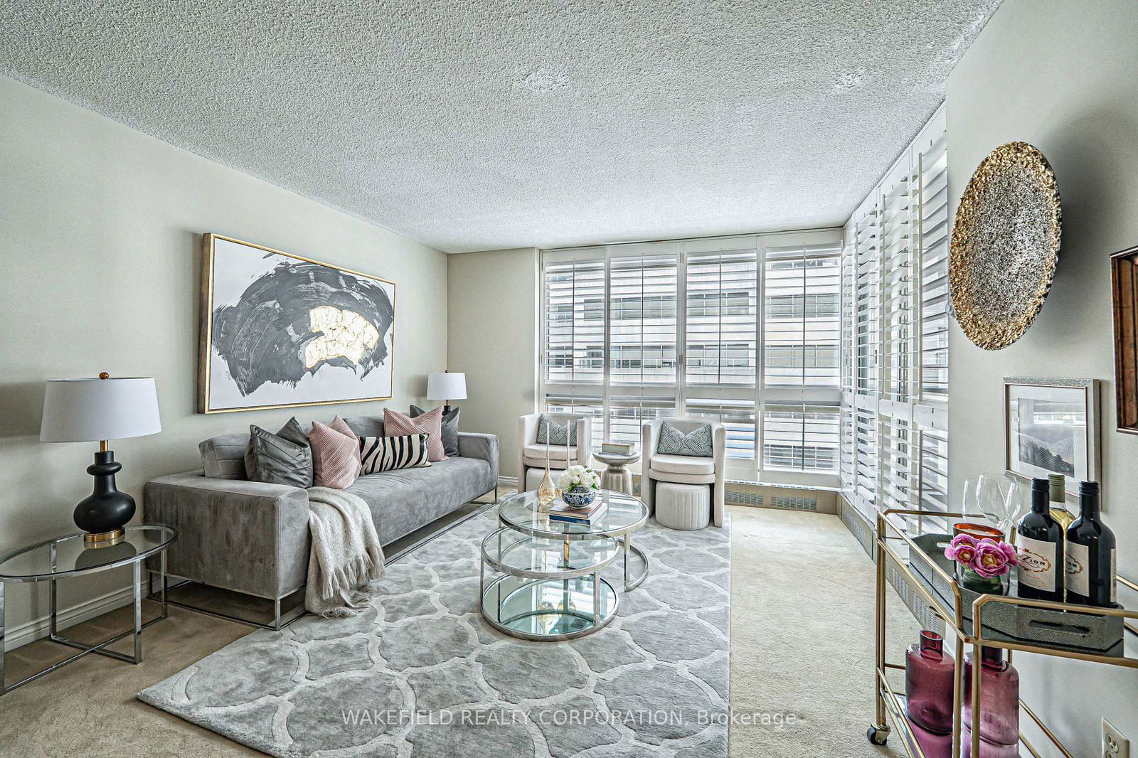Welcome to this spacious one bedroom apartment at Granite Place with floor to ceiling windows, California shutters, elegant entrance hall, great main bedroom with good closet space and extensively renovated bathroom in 2023. A private patio off the living room. The kitchen has lots of cupboard space and new appliances two years ago. Granite Place is a wonderful complex of two buildings set well back from the street and surrounded by lush landscaped Gardens. Hard to beleive you are at Yonge and St Clair. The amenities are superb with a salt water pool, Sauna, whirlpool, exercise and party rooms and guest suite. They are well known for the full time concierge and security service they offer. A multi year renovation of the main lobby and rear terrace is nearing completion in the Fall . Pets are welcome and limited to one dog or a dog and a cat or two cats per suite. Maximum weight 33 pounds