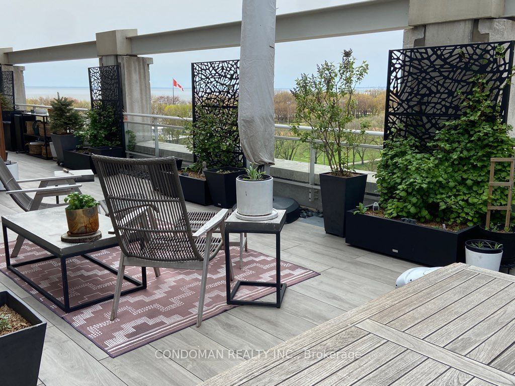 Move Into This Exceptionally High End Fully-Furnished Executive Rental with Stunning Views!! This 1450+Sqft, 2+ Den/ 2 Full Bath Corner Unit Has Undergone A $400,000 Renovation. Luxurious Upgrades Include Miele Kitchen Appliances, Toto Toilets, Somfy Motorized Blinds, And Custom Media Unit, Custom Wardrobes, And Much More. Enjoy The 800 Sqft, Beautifully Landscaped, Private Terrace With Sunset And Lakeside Views. Den Is A Fully Separate Room With A Custom Door. This Is A Truly Unique And Lavish Unit. 1 Parking And 1 Locker Included. Fantastic Location With Quick Access To Waterfront, Lakeshore Blvd, Streetcars, Loblaws, Lcbo And Much More. Option For Full Utilities And Cleaning Service.