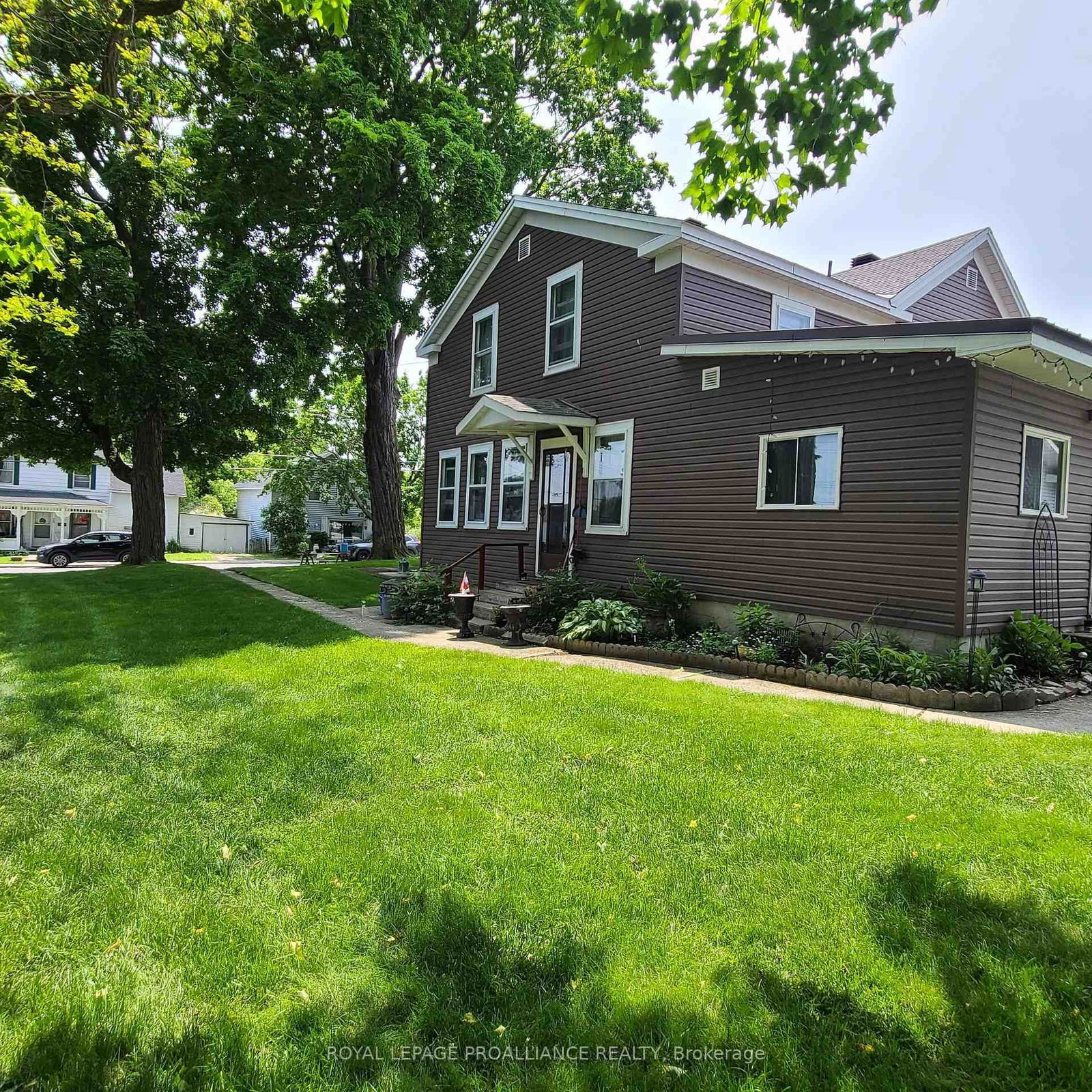 Nestled in the charming town of Prescott's west end, this stone triplex home offers an exceptional opportunity for income property ownership. Located on a double lot, the property boasts an array of desirable features, ensuring comfort, convenience, and ample space for both owner and tenants. The front stone portion of the home is owner occupied. It includes a newer eat-in kitchen providing ample space for cooking and dining. The living Room features a wood fireplace (as is), perfect for relaxation. A large dining area accommodates family meals and gatherings. There is a practical one-piece bath for convenience. There is hardwood flooring thru out underneath the carpeting. The second floor features Two spacious bedrooms offering comfort and privacy. Addition functionality is a 3rd room that could provide a versatile office or music room. A well-appointed 4-piece bathroom completes the upstairs layout.. The 2nd floor has is air conditioned. Outside, the spacious, heated and drywalled 30 x 30 ft garage provides generous storage and workspace, along with plenty of parking. Each of the 2 rental units in the back of the triplex are $600.00 a month plus hydro and consist of : 1.5 bedrooms, a kitchen, a living room, and a 3-piece bathroom along with an enclosed porch for addition space. This triplex stone home is a remarkable blend of historic charm with modern functionality, making it an ideal investment opportunity or a great place to call home. With spacious living areas, income-generating rental units, this property in Prescott's west end is truly a gem waiting to be discovered.