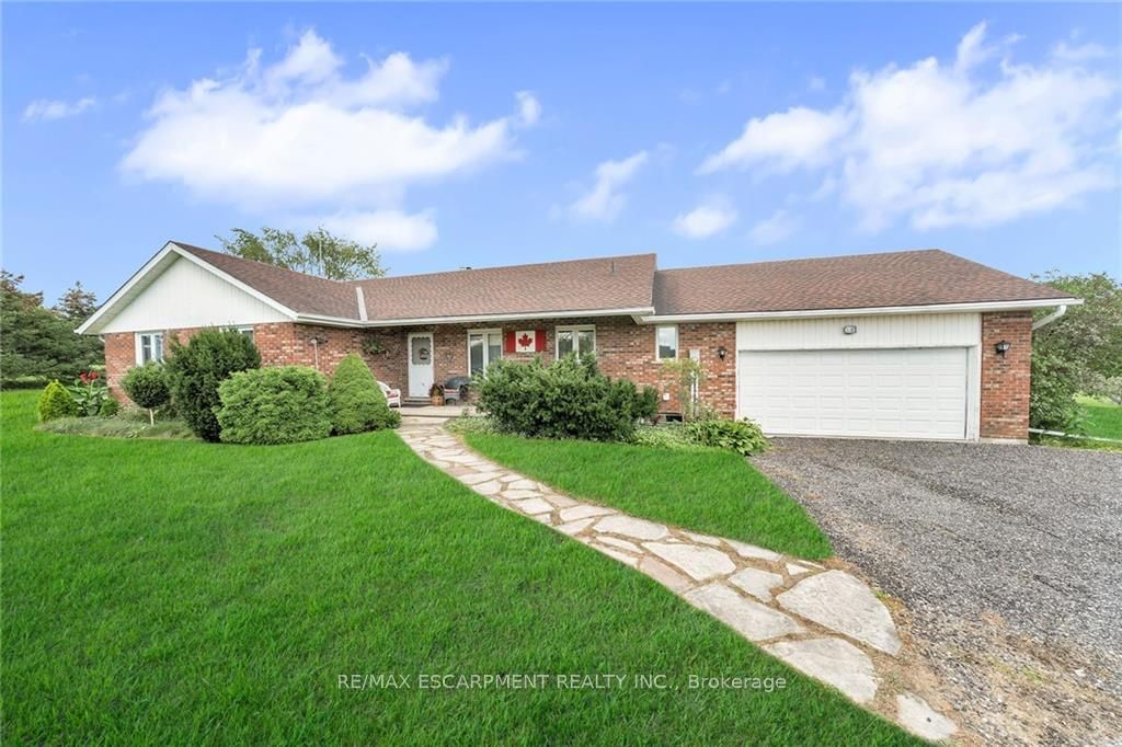 Beautiful 1.38ac country property enjoying 200ft of quiet road frontage mins south of Binbrook - 20 mins/Hamilton, QEW. Incs brick bungalow offering 1586sf living area, 1682sf lower level, 524sf 2-car garage, 3 sheds, dog run, 216sf deck & 128sf deck off primary bedroom overlooking private yard, pond & forest. Incs kitchen w/dinette, living room sporting wood stove & sliding door deck WO, primary bedroom incs WI closet, 2pc en-suite (shower not installed) & deck WO, 2 bedrooms, 4pc bath, 2pc bath, MF laundry & garage entry. Lower Level ftrs rec/family room w/wood stove, 4th bedroom, multiple cold rooms & utility/storage room. Extras-septic pump-out-Sept/23, cistern clean/water-July/23, 680 ltr double bottom oil tank-Aug/23, roof-2009, appliances, AC, c/vac, pool table, hot tub wiring, 200 hydro. An Affordable "Rare Rural Find"!