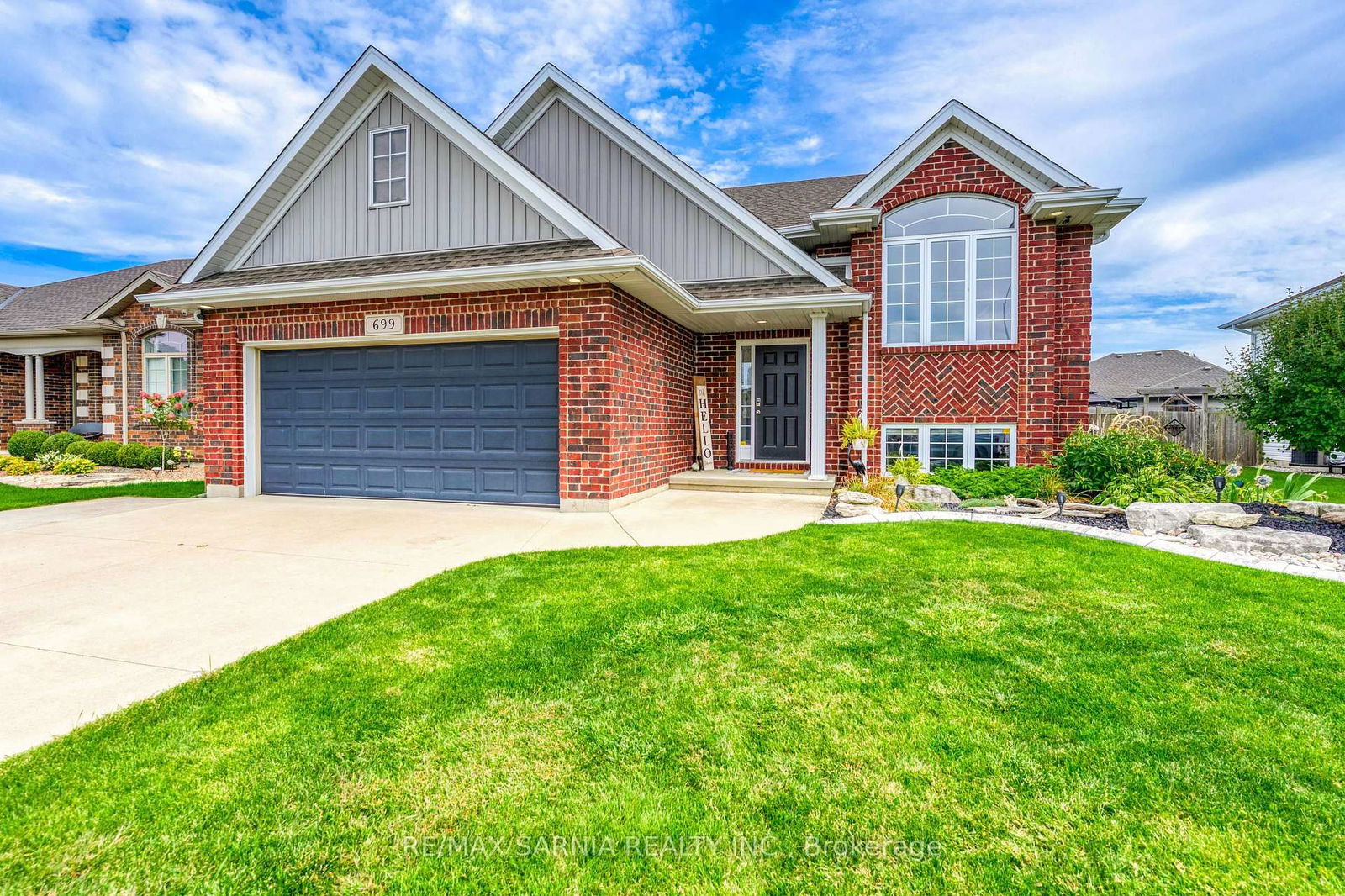 Welcome to 699 Bentinck Dr., Corunna, a stunning Danbury-built Muskoka model raised ranch in one of Corunnas most desirable, family-friendly neighbourhoods. Step inside to find a bright, open-concept main floor with large windows that fill the space with natural light. The modern kitchen flows seamlessly into the dining and living areas, creating a warm and inviting space for family gatherings and entertaining. The main floor also features 3 spacious bedrooms, including a primary suite with cheater ensuite access to the full bathroom. The fully finished lower level offers 2 additional bedrooms, a full bathroom, and a large rec room with a cozy gas fireplace. With a roughed-in wet bar, this space is perfect for movie nights or hosting friends. Outdoors, the property truly shines. The fully landscaped backyard is designed for both relaxation and fun, complete with an above-ground pool, hot tub, and patio areayour private retreat right at home. The heated double-car garage adds year-round convenience and comfort. Located close to schools, parks, and all of Corunnas amenities, this home perfectly balances style, functionality, and lifestyle. Move right in and enjoy everything it has to offer!