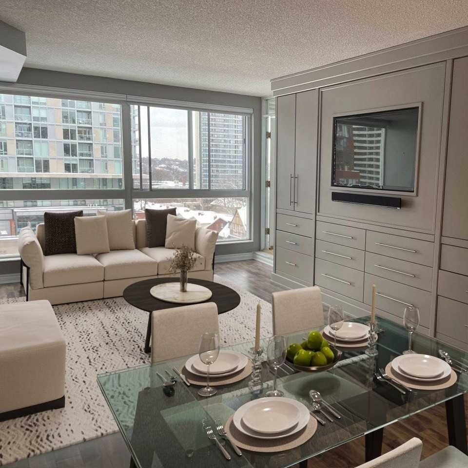 Welcome To Broadway Plaza! This Spacious & Newly Renovated Suite Is The Perfect Place To Call Home! Located In The Heart Of Yonge & Eglinton! Unobstructed Views Of Yonge St! The Suite Features An Airy Sun Filled Living/Dining Perfect For Entertaining (Large Enough For A Dining Table!) A Large Bedroom (Enjoy A King Bed!) A Functional Kitchen With Loads Of Cabinet & Counter Space And Full Size Appliances! A Spa-Like Renovated Bathroom, Double Bedroom Closets, Ample Storage Plus A Locker, Built-In Media Unit/Murphy Bed. New Appliances And New Lighting!